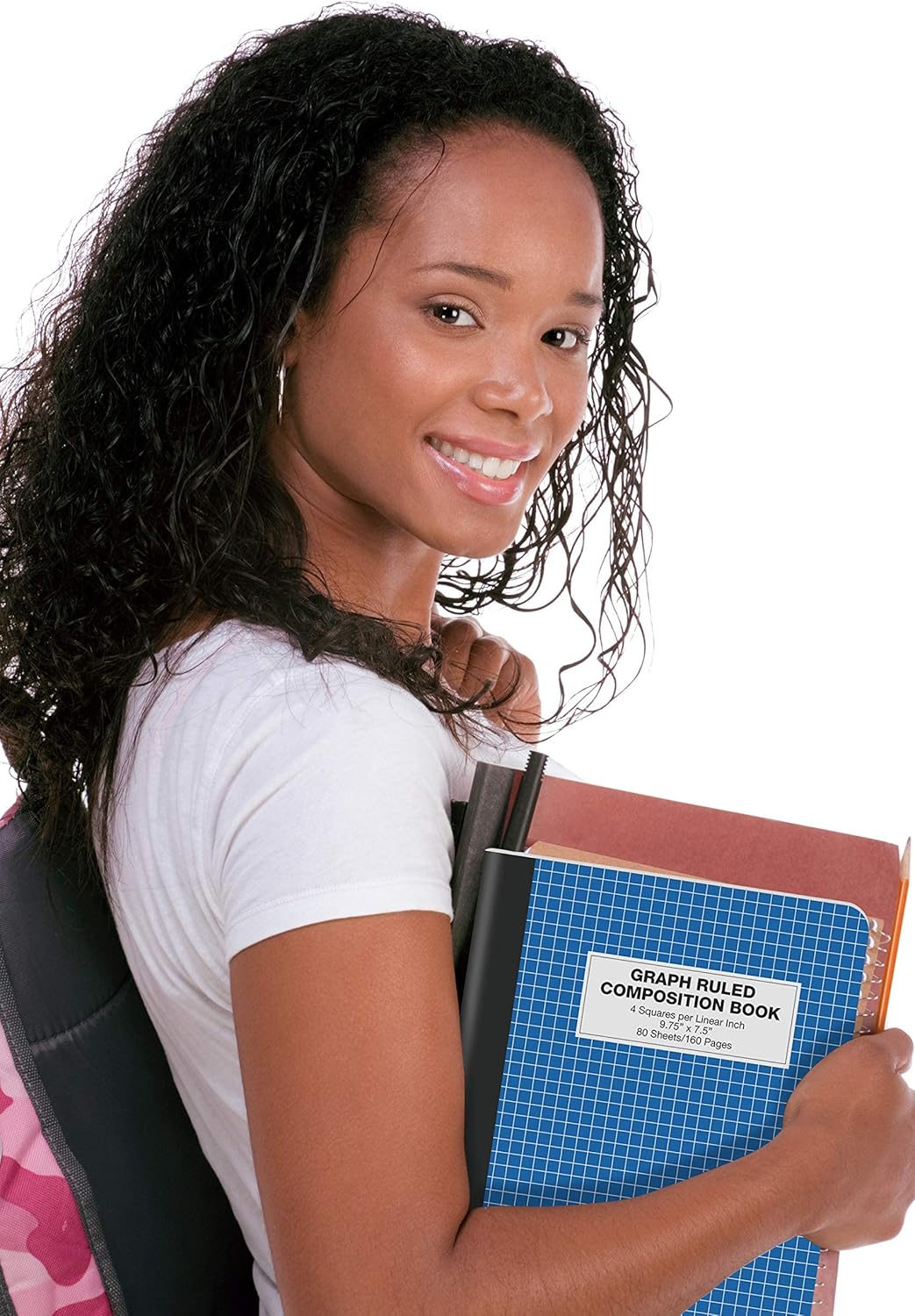 - QUAD-RULED - Set of (12) twelve 9-3/4 x 7-1/2 inch thread-bound, wireless 80 sheet/160 page, quadrille 4 x 4 graph paper composition books with 4 squares per linear inch, perfect for plotting math equations and creating graphs.