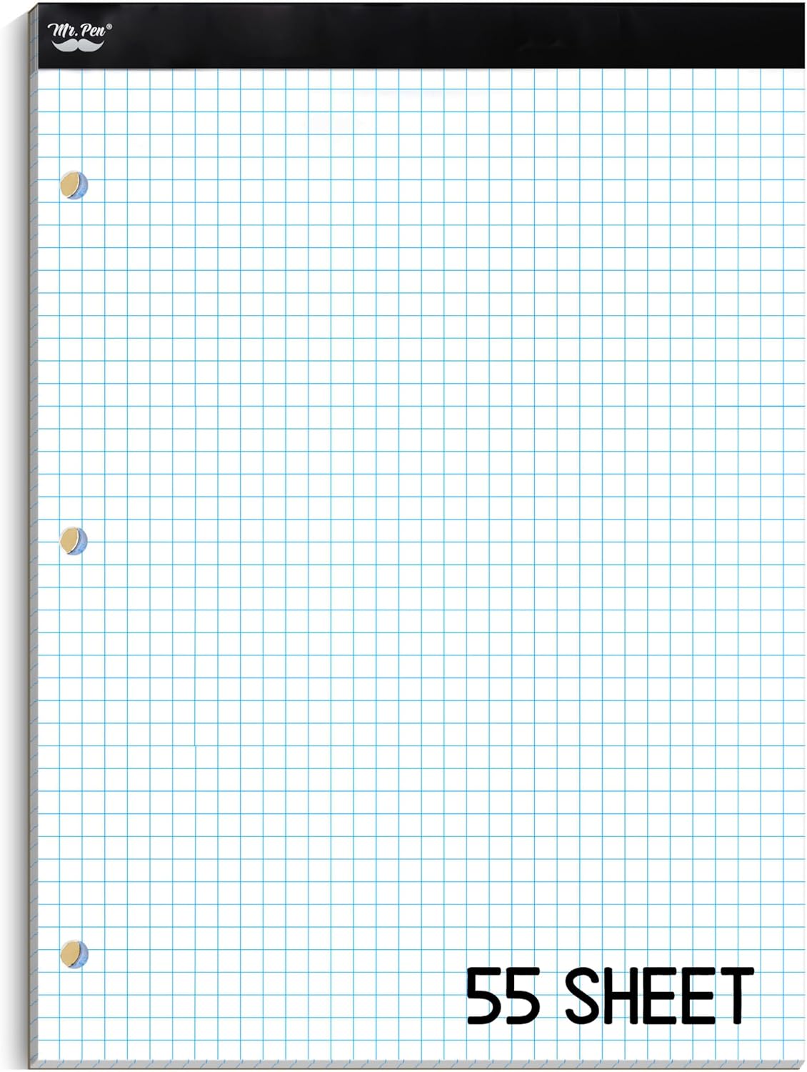 Mr. Pen- Graph Paper, 8.5"x11", 55 Sheets, 4x4 (4 Squares Per Inch), 3-Hole Punched, Math Graph Paper Pad, Computation Pads, Back to School Supplies