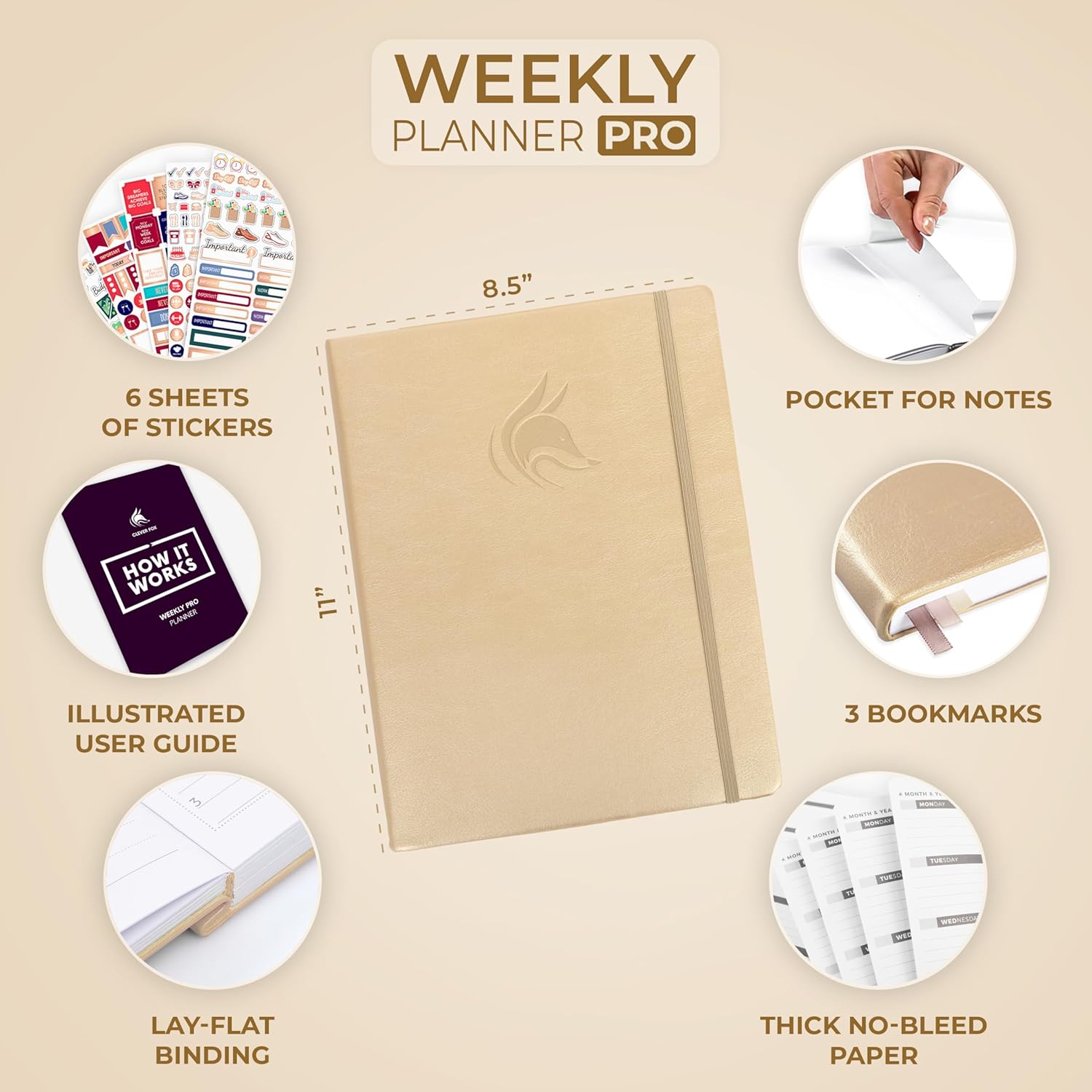 Clever Fox Planner PRO – Weekly & Monthly Life Planner to Increase Productivity, Time Management and Hit Your Goals, 8.5x11″ (Pearl)