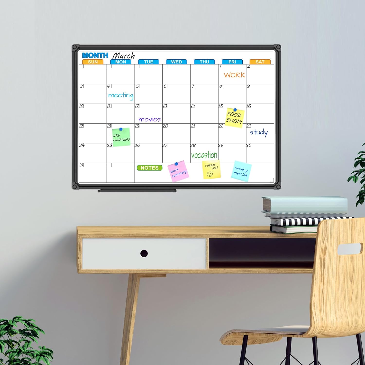 - MAGNETIC CALENDAR WHITEBOARD SURFACE: Surface can be used to mark dates meetings and appointments, Organize weekly plan, never forget important calendar, Strong magnetic performance, easy to put notes, pages, documents, photos, graphs and cards on. Creating more working, learning and playing experience.