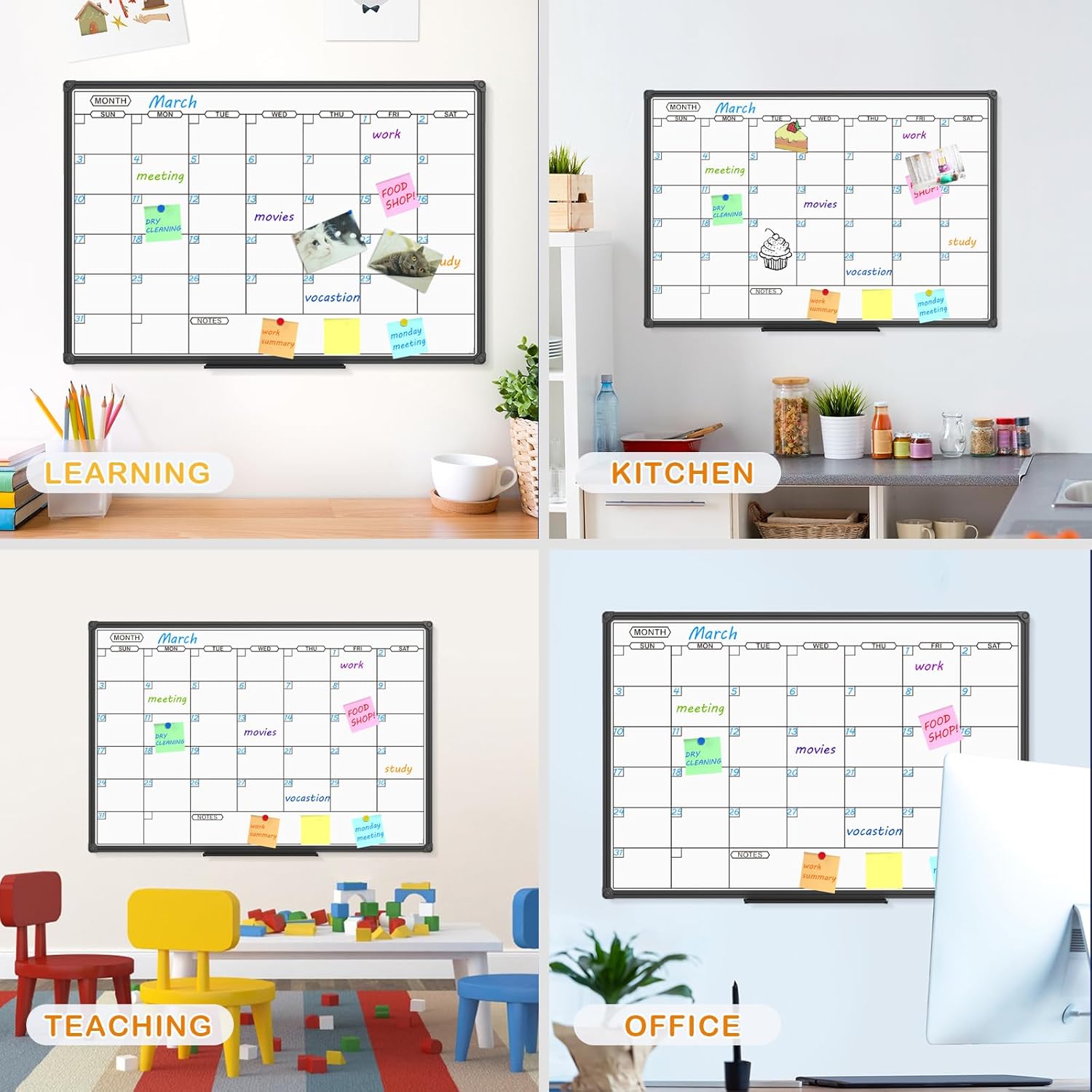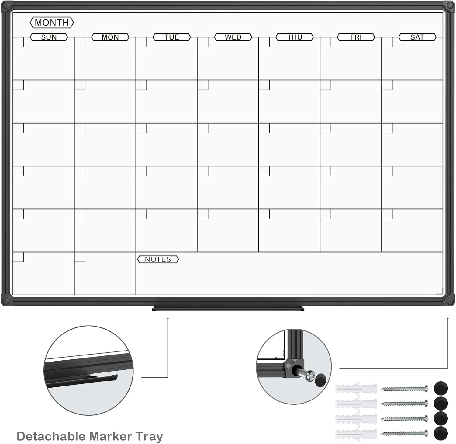 JILoffice Dry Erase Calendar Whiteboard - Magnetic White Board Calendar Monthly 36 X 24 Inch, Black Aluminum Frame Wall Mounted Board for Office Home and School