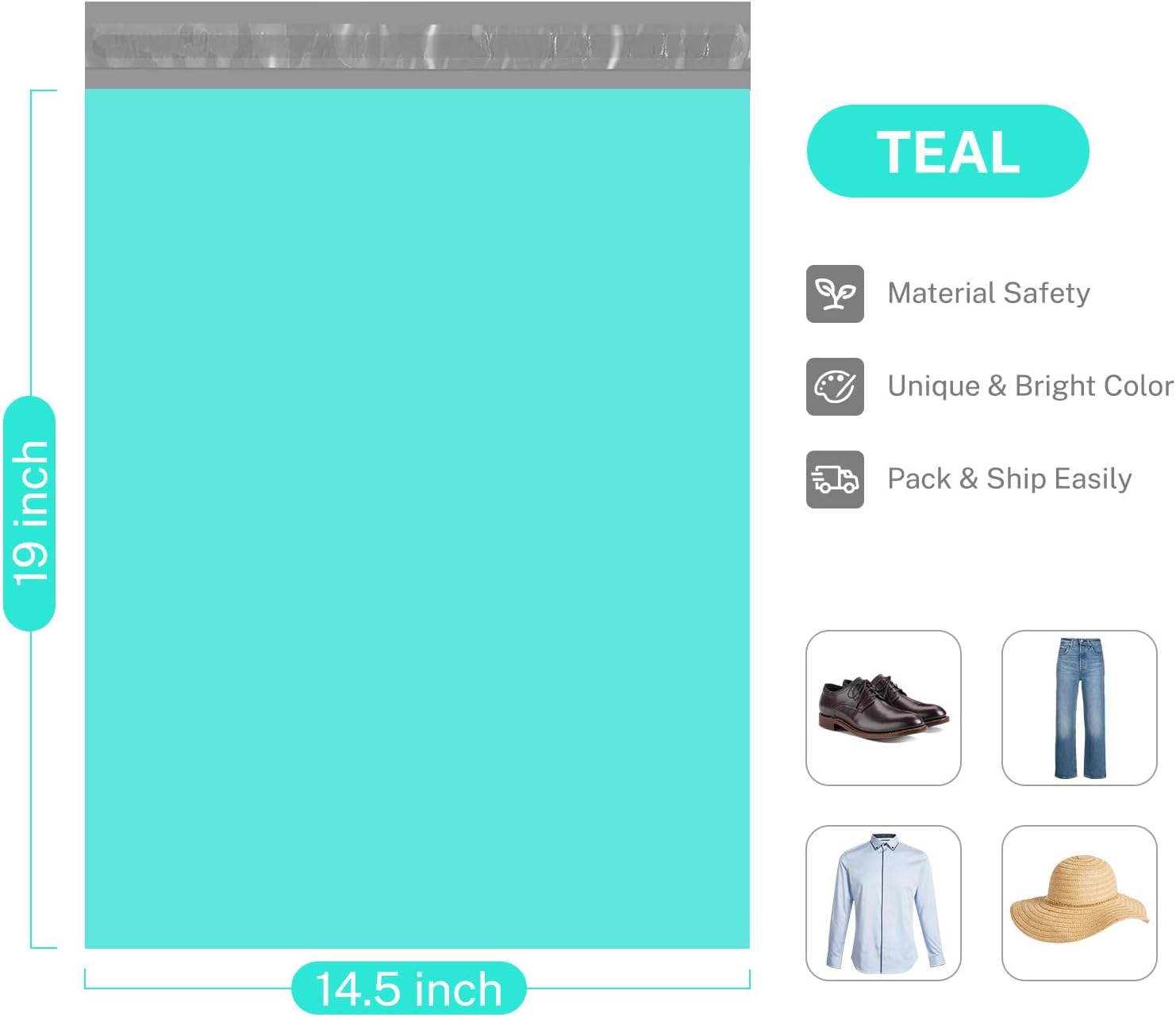 Metronic Teal Poly Mailers 14.5x19 Large Poly Mailers 100 Pack Self-Seal Shipping Bags, Packaging Bags, Shipping Envelopes, Packaging for Small Business, Boutique, Clothing