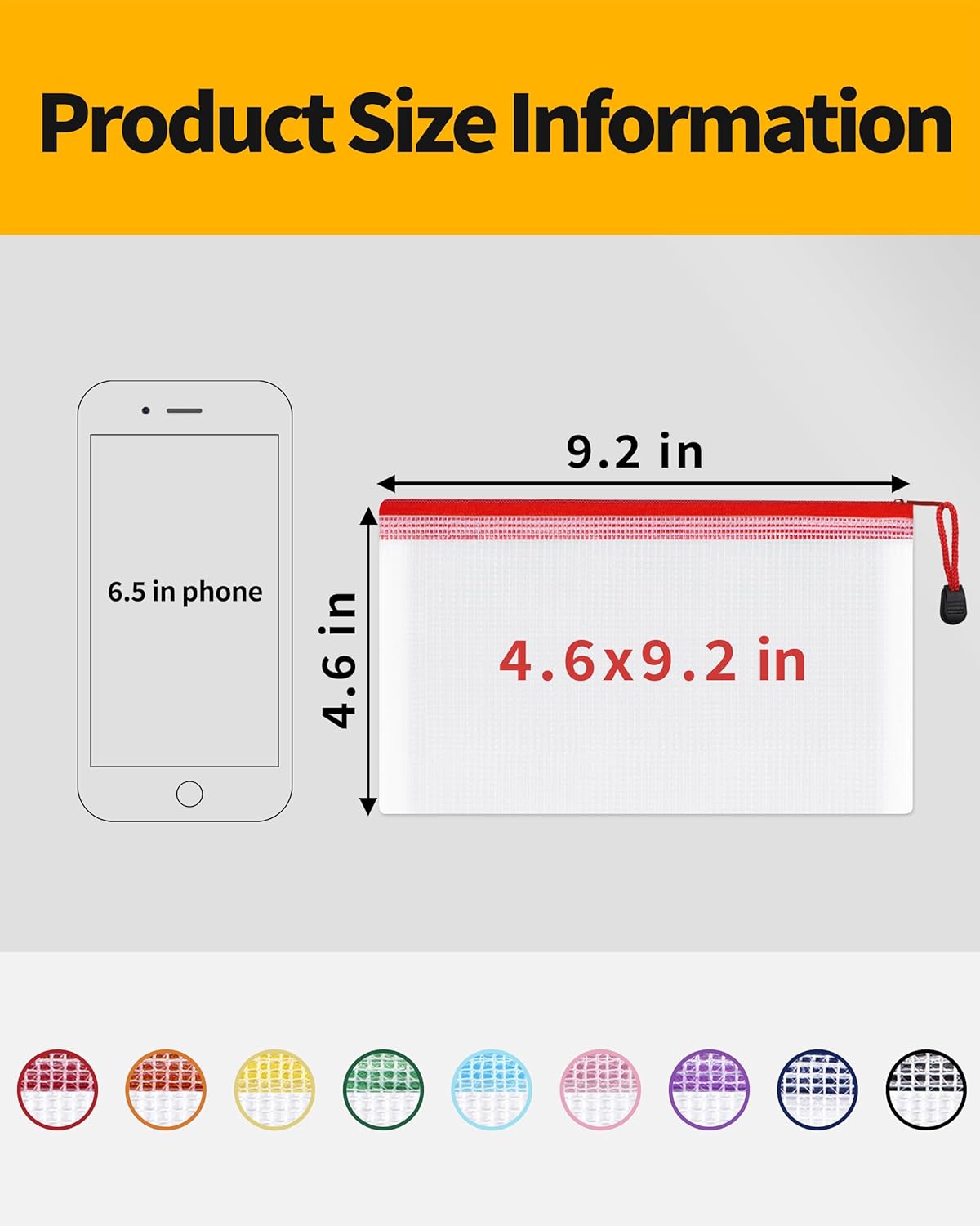 SUNEE Plastic Mesh Zipper Pouch 4.6x9.2 in (9 Colors, 18 Packs), Plastic Pencil Pouches, Multipurpose Travel Bags, for Office Supplies Bills Cosmetics Travel Accessories& Games Organizing Storage