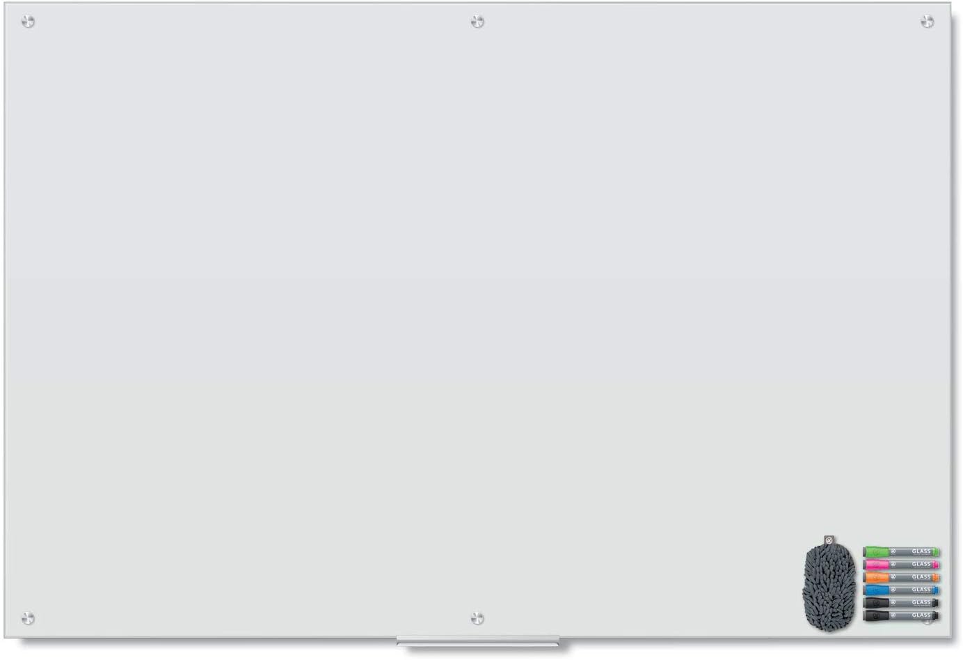 U Brands Magnetic Glass Dry Erase Board, Office Supplies, White, with Eraser, Markers, Magnet, 18” Tray, 5mm, 48” x 72”