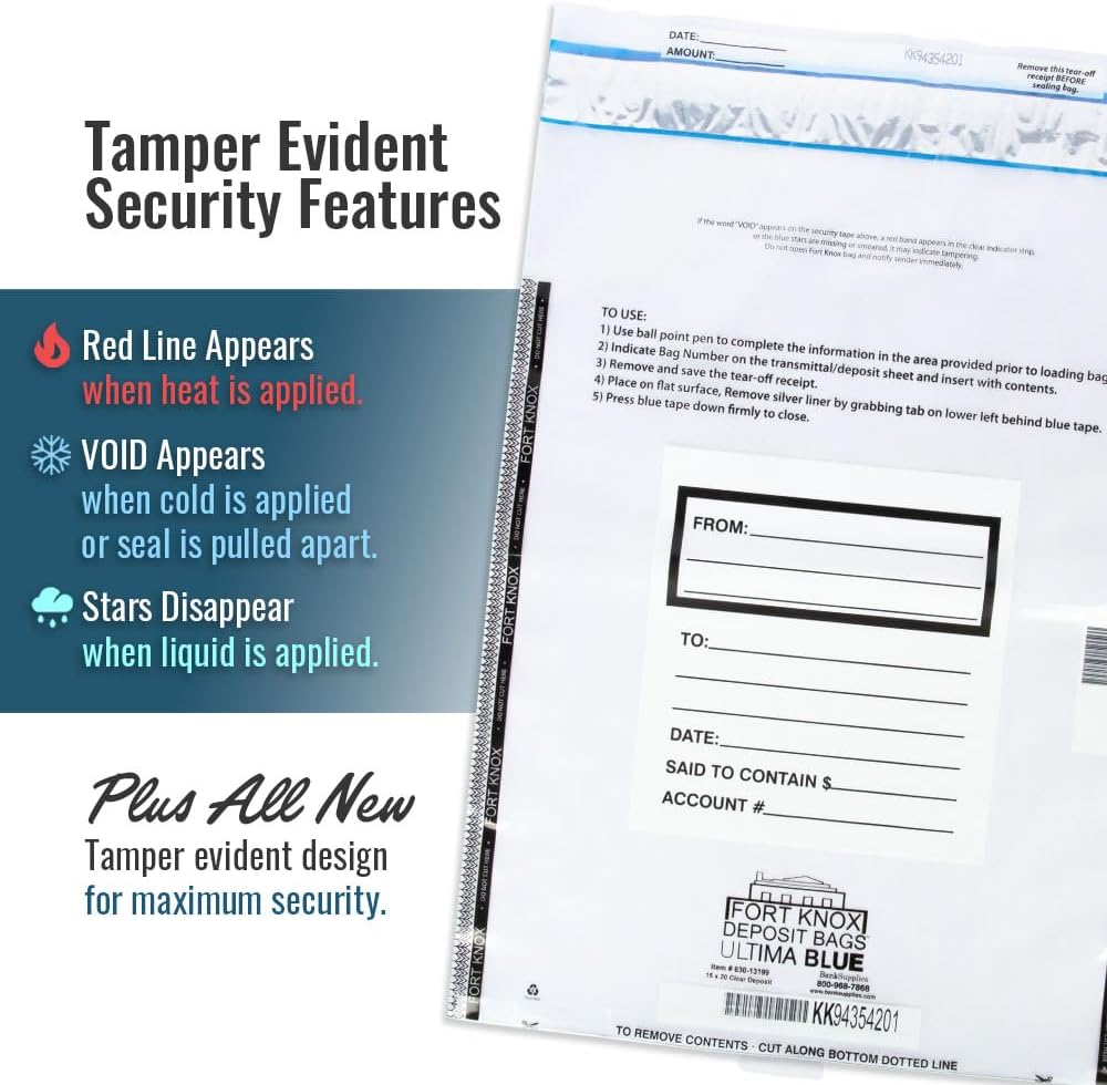 - WHITE DEPOSIT BAG: Ultima Blue is the ultimate security bag with features that are so advanced that itβs virtually impossible to hide tampering or unauthorized entry. The bag is completely opaque so the contents inside are hidden from sight.