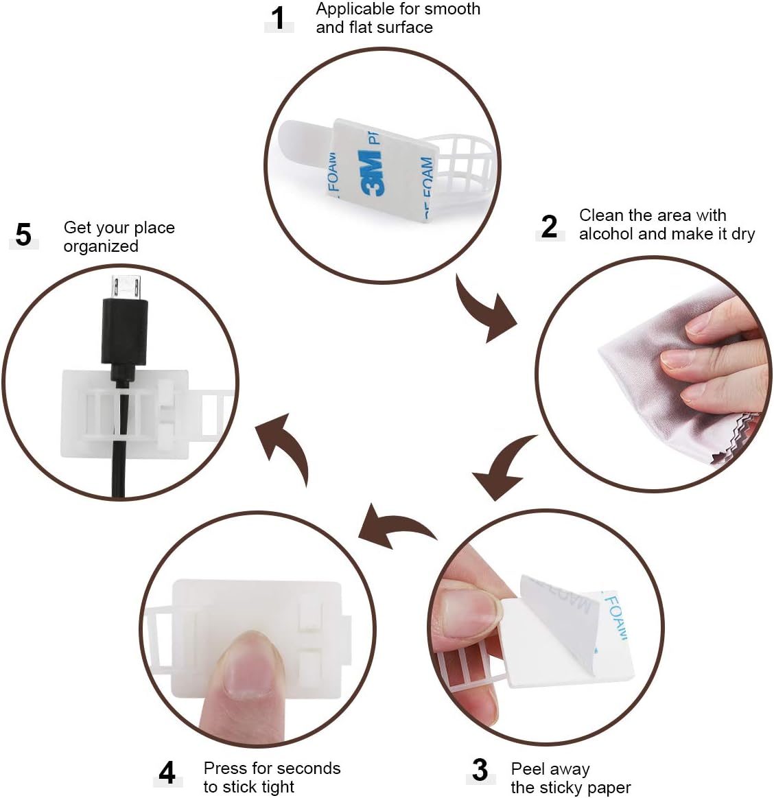 - 【WIDE APPLICATION】- Self adhesive cable management clips can be used for power cords, charging cables, USB wires, electronic cables, festival lights, cars and so on. It’s a good helper to save space and route the wires neatly and unobtrusively in your home or work place