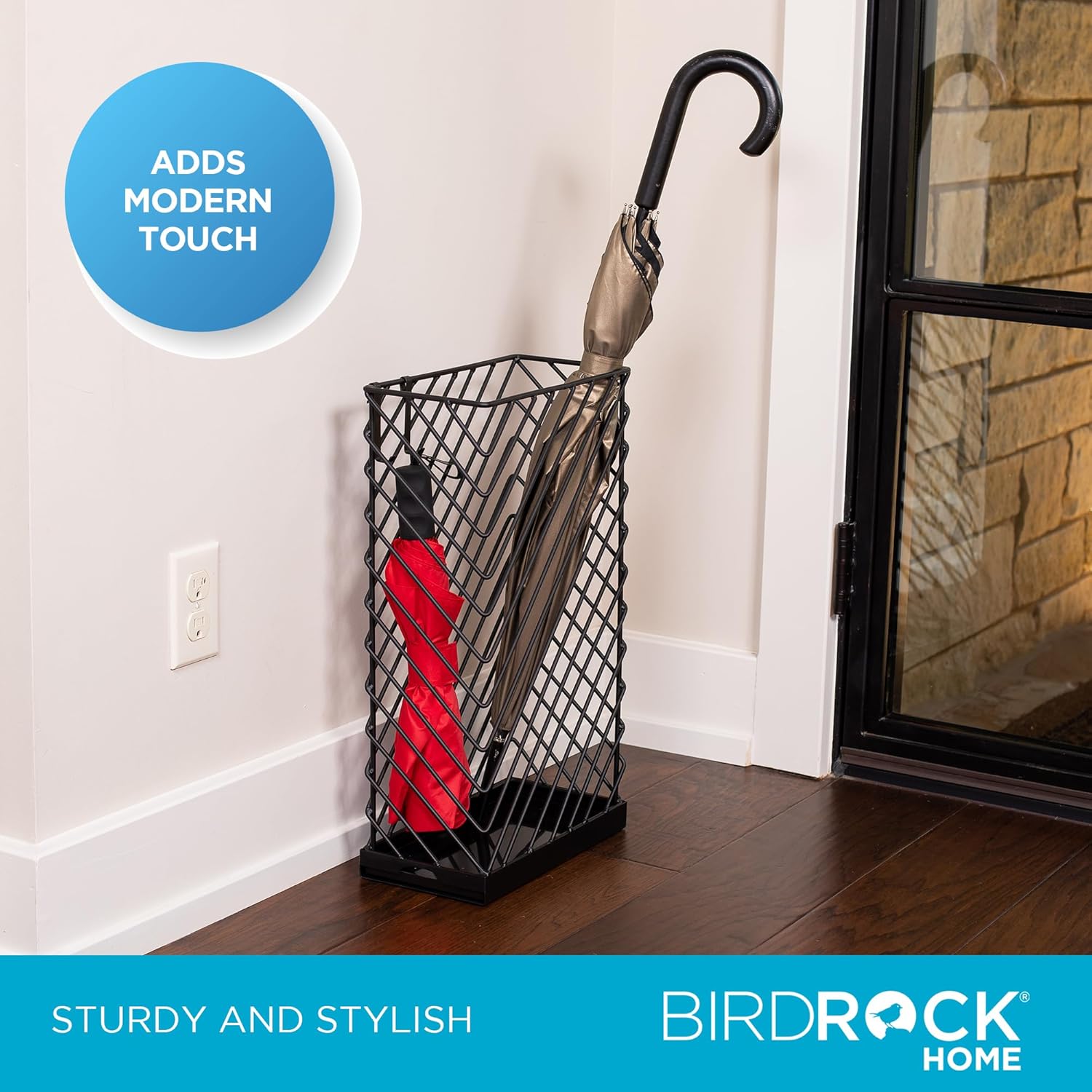 BIRDROCK HOME Decorative Umbrella Stand with Removable Water Tray - Large Metal Umbrella Rack and Cane Walking Stick Organizer for Entryway - Umbrella Holder for Indoor & Outdoor - Black, Diagonal