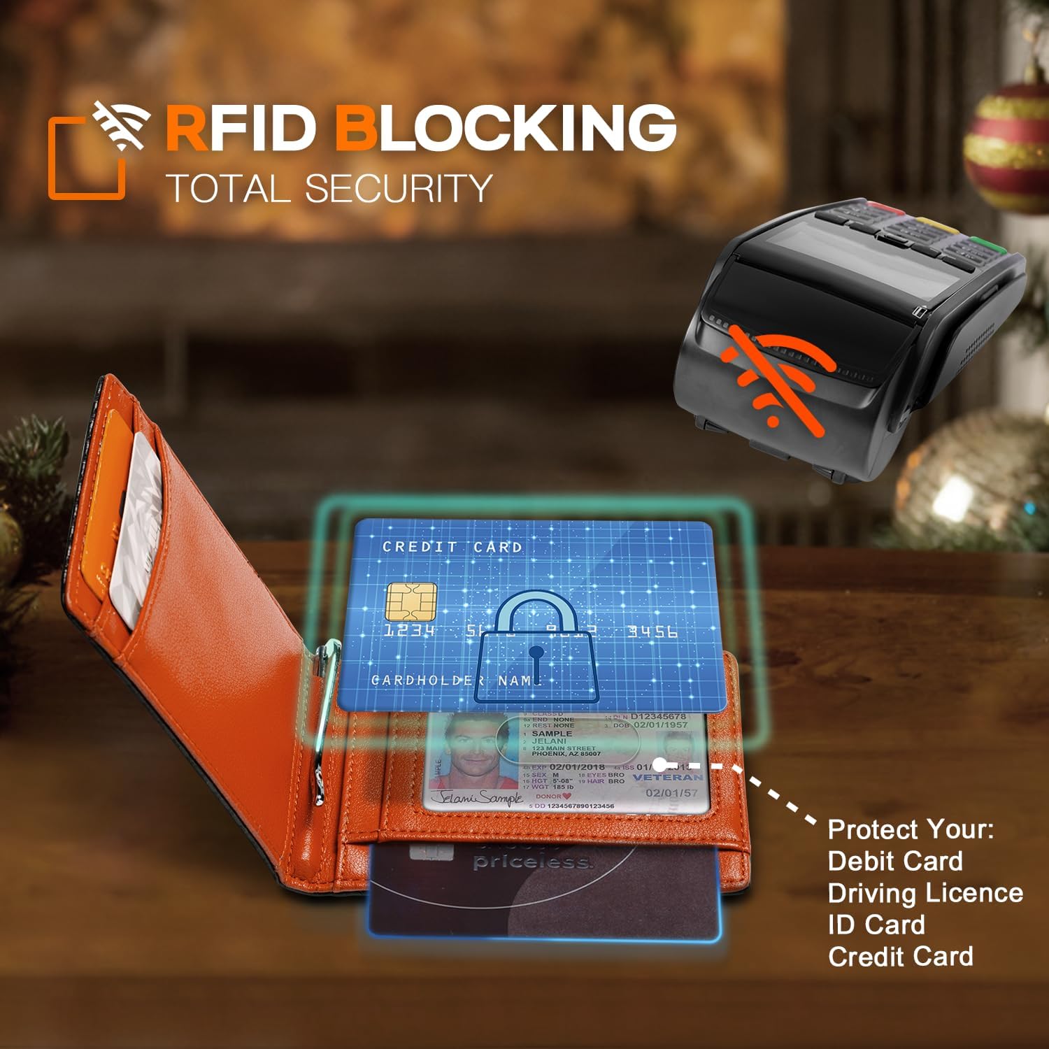Slim Wallet for Men Genuine Leather RFID Blocking Bifold Minimalist Front Pocket Mens Wallet with Money Clip Thin Gift Box