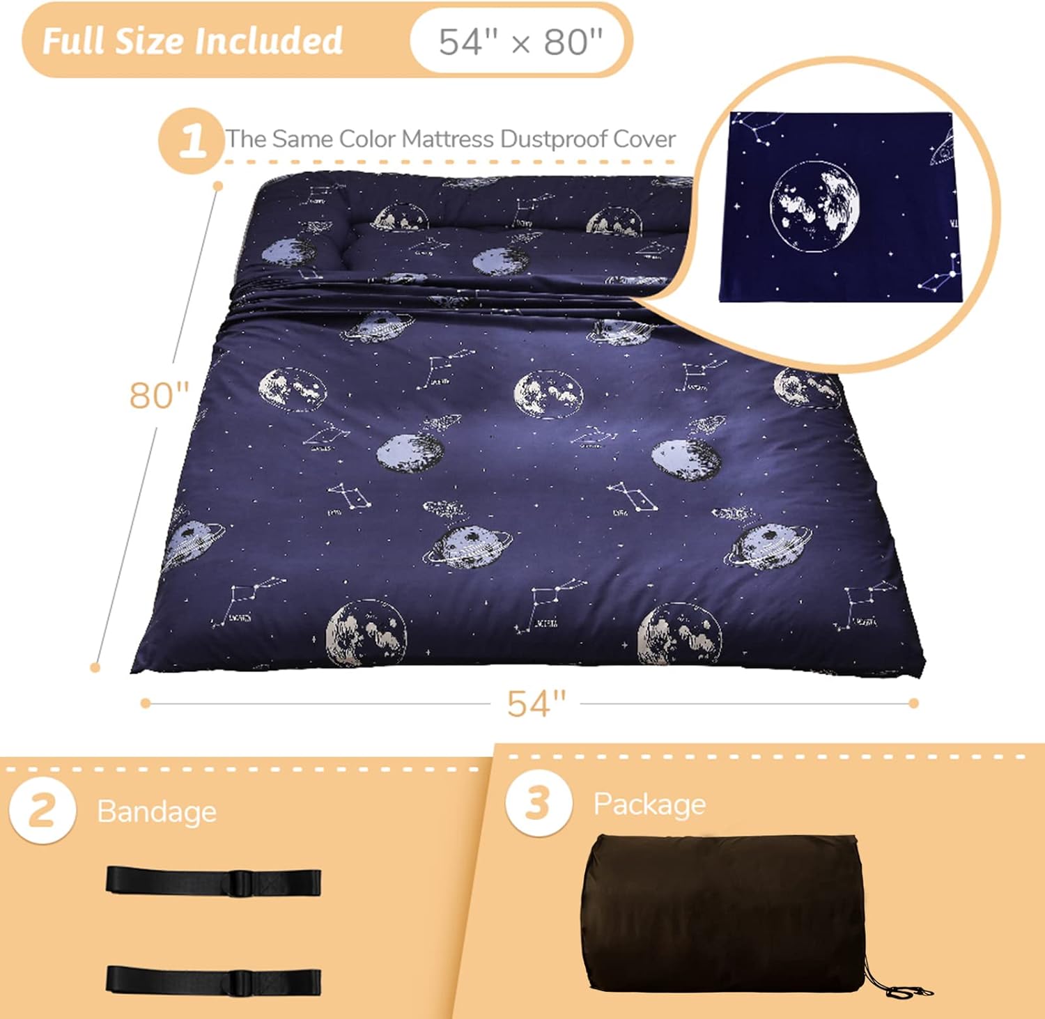 Navy Space Adventure Japanese Floor Futon Mattress, Thicken Tatami Mat Sleeping Pad Foldable Bed Roll Up Mattress Floor Lounger Bed Couches and Sofas for Kids Full Size
