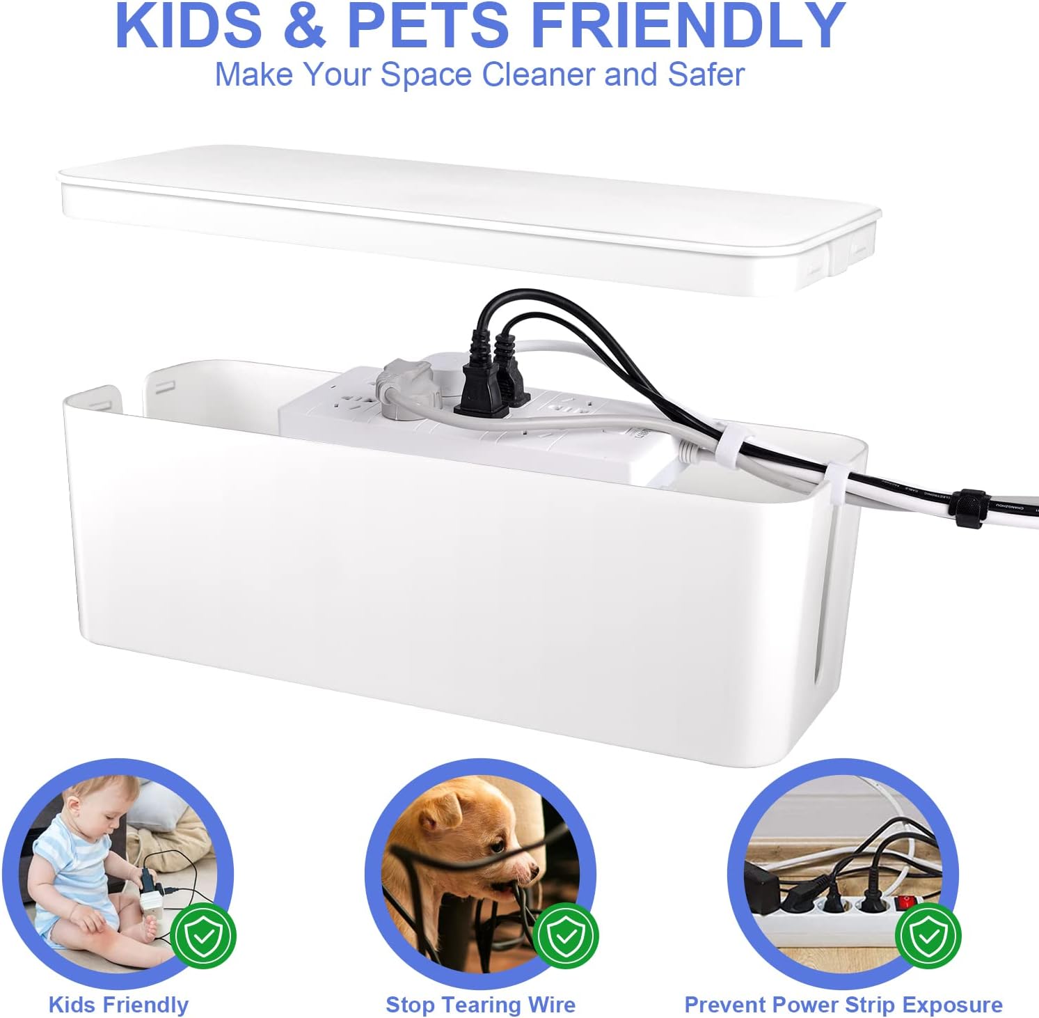 - ACCESSORIES UPGRADE - Our cable management boxes are equipped with 28 pcs cable management set that concludes 6 x One Slot Cable Clip Holders,2 x Triple Slot Cable Clip Holders,2 x Six Slot Cable Clips Holders ,2 x Triple Slot Cord Clips ,6 x One Slot Cord Clips,10 x Reusable Cable Ties.That help you even better organize your cables or wires.