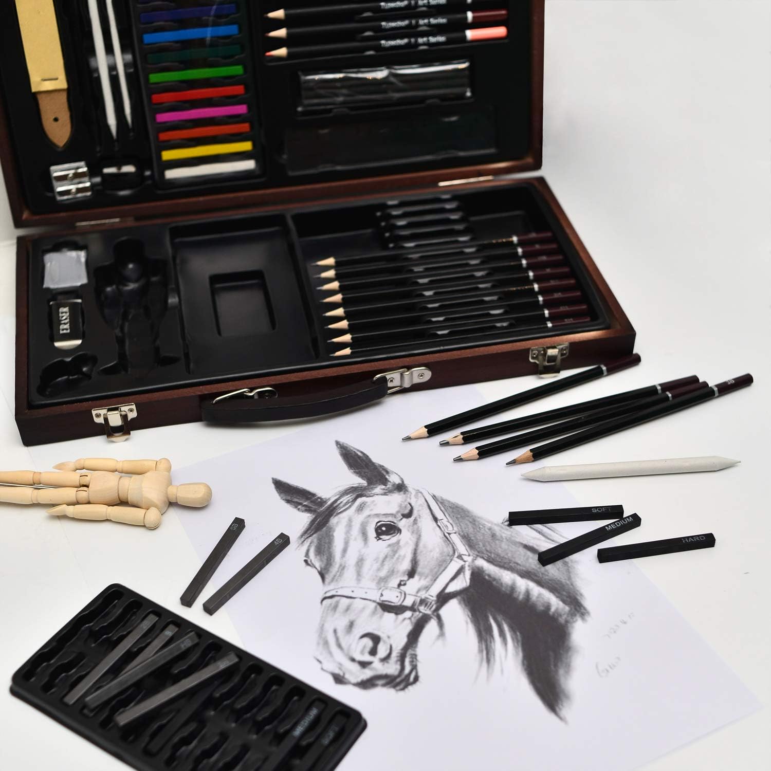 - ✔【PORTABLE & LIGHTWEIGHT】:This Sketching Wooden Art Set collect into a Wooden Case with Handdle,the case compartmentalized for all your supplies,you can take it to any place.Light Weight for 2 LBS
