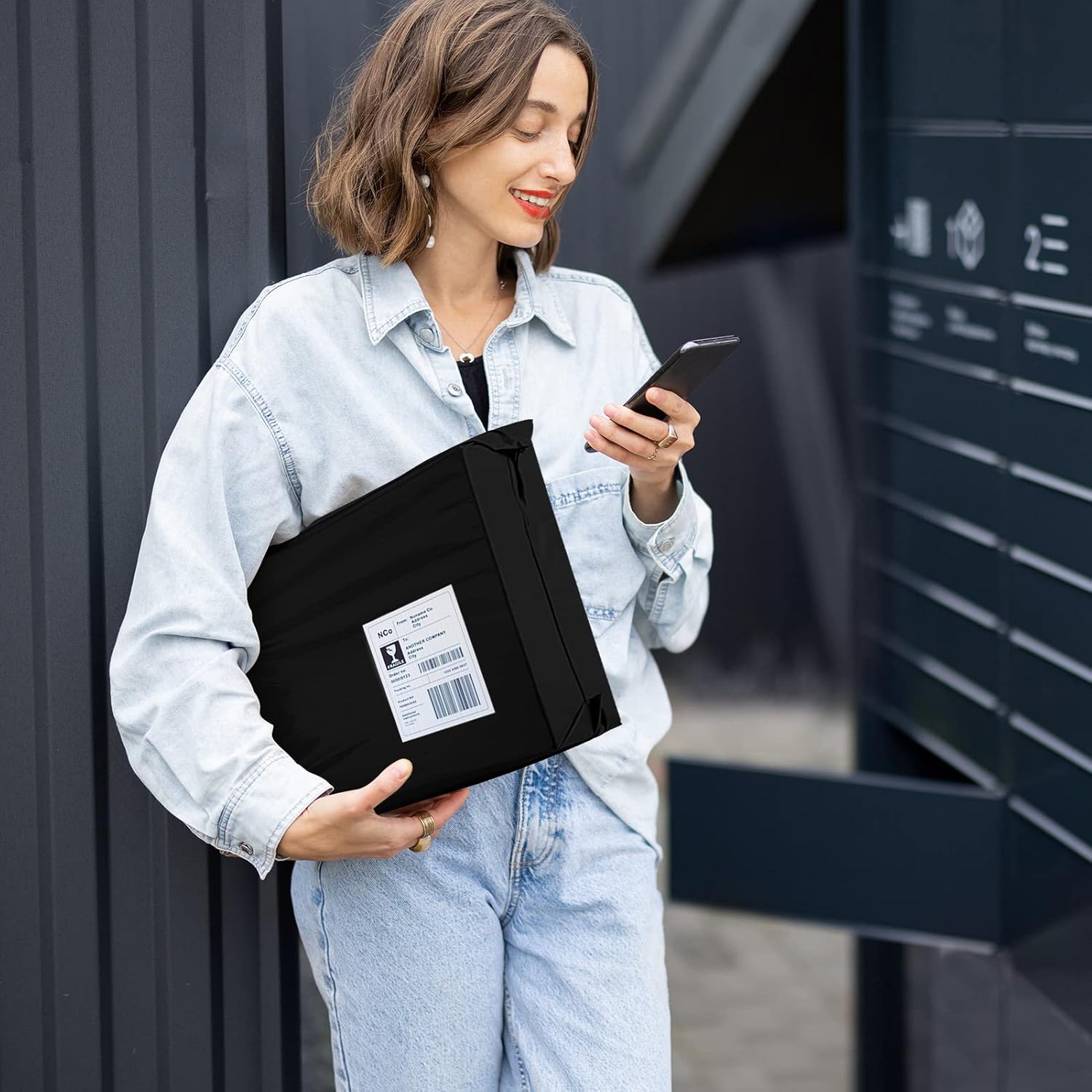 Metronic Poly Mailers 12X15.5 200 Pack, Strong Adhesive Shipping Bags for Clothing, Waterproof and Tear-Proof Shipping Envelopes, Mailers Poly Bags Packaging Bags for Business in Black