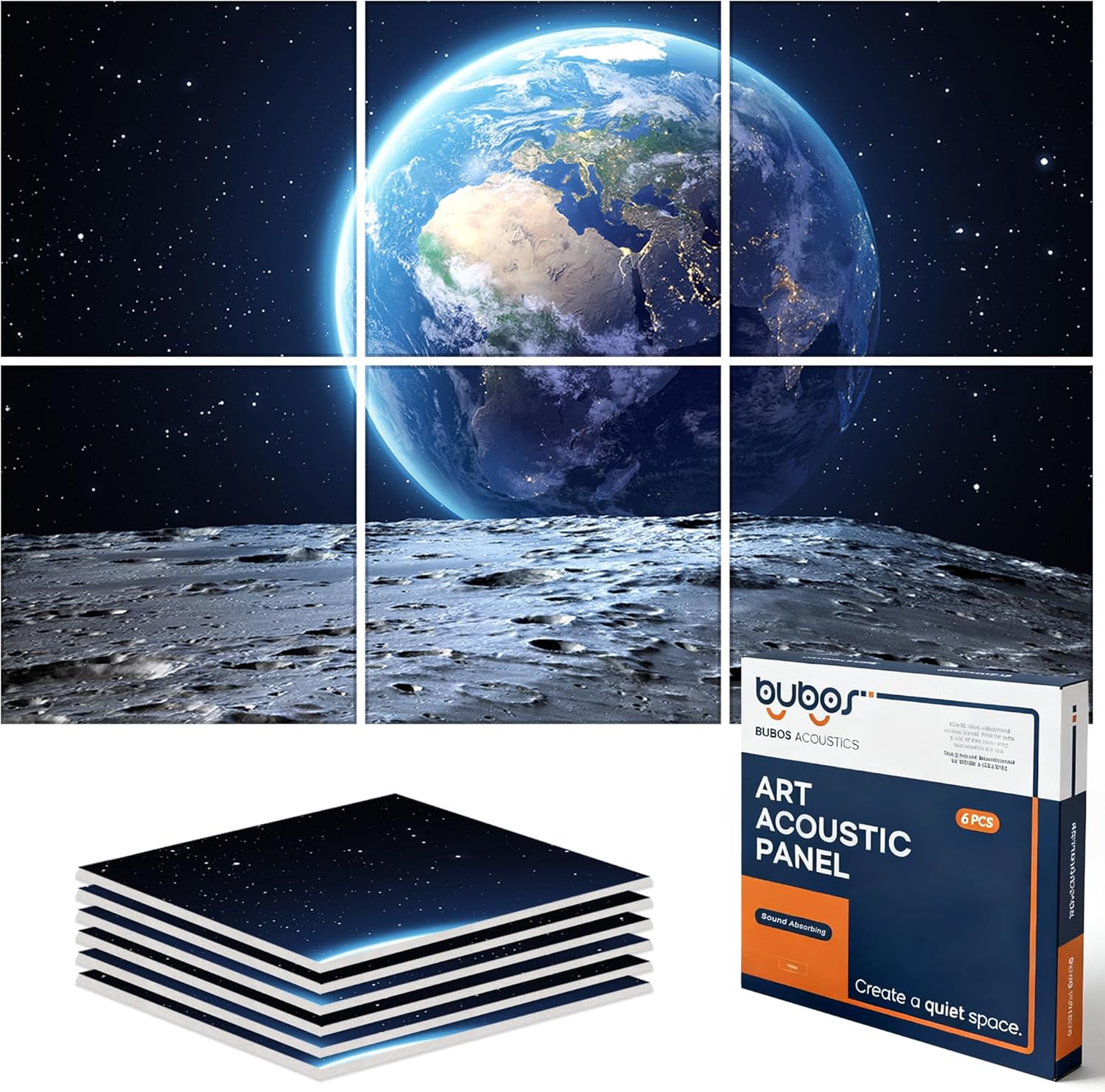 BUBOS 6 Pack Art Acoustic Panels Soundproof Wall Panel,70.8X47.2 Inches Large Sound Absorbing Panel,Self-adhesive Decorative Acoustical Wall Panels, Acoustic Treatment for Home Office(Earth)