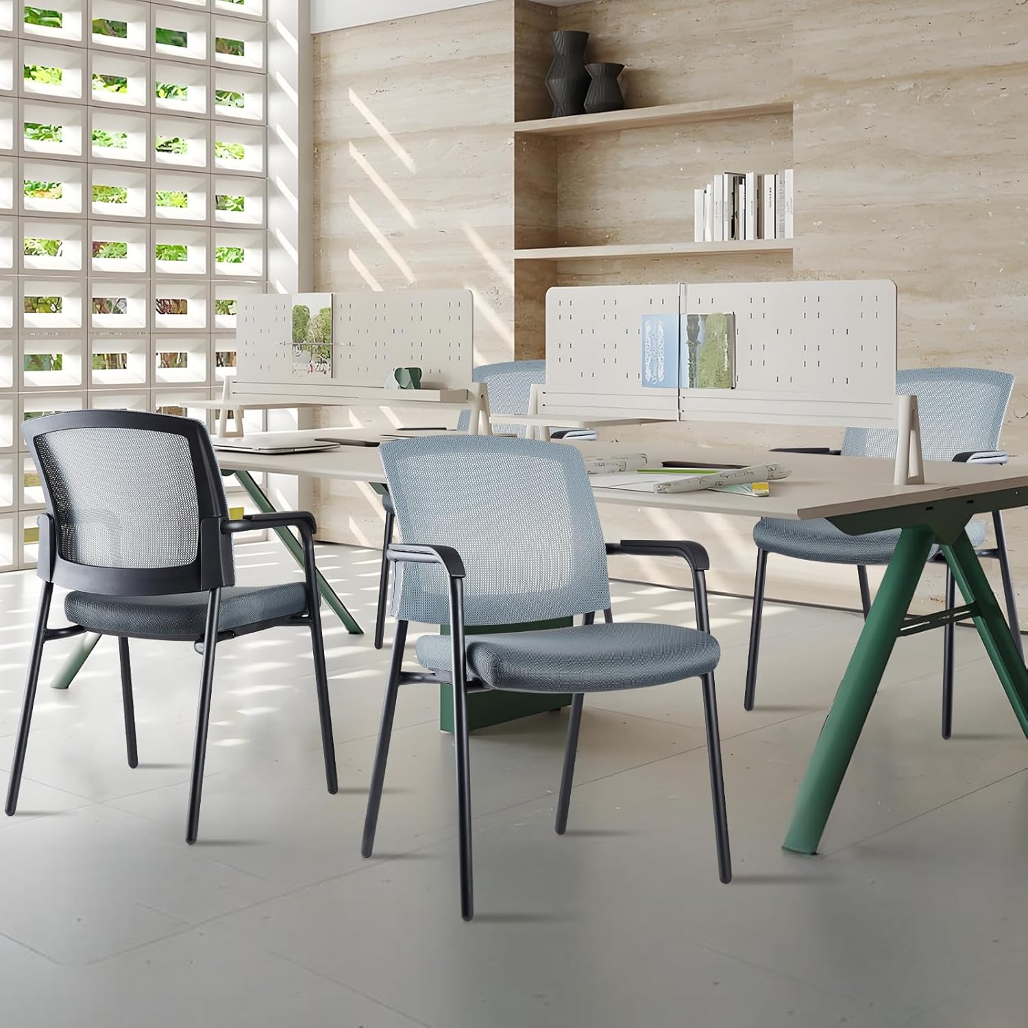 - â ăSpace-SavingăThese office guest reception chairs are stackable, making them perfect for offices with limited space. You can easily stack them when not in use, saving valuable floor space. This visitor chair is perfect for any space including living rooms, bedrooms, home offices, schools, lobbies, churches and conference rooms. Perfect for creating a warm and cozy reception area.