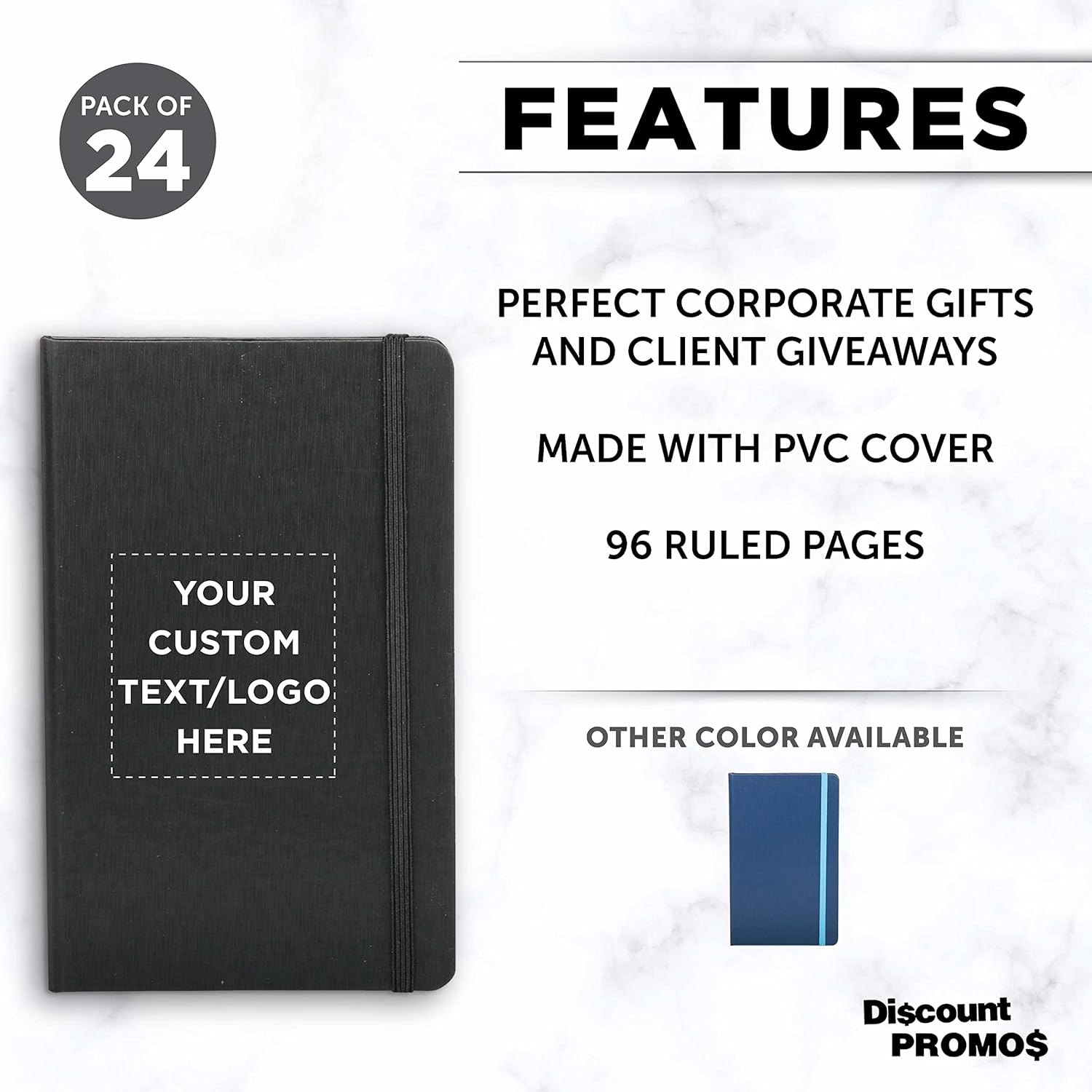 DISCOUNT PROMOS Custom Hardcover Notebook Journals with Elastic Colored Band Set of 24, Personalized Bulk Pack - Perfect for School, Office, Home - Black