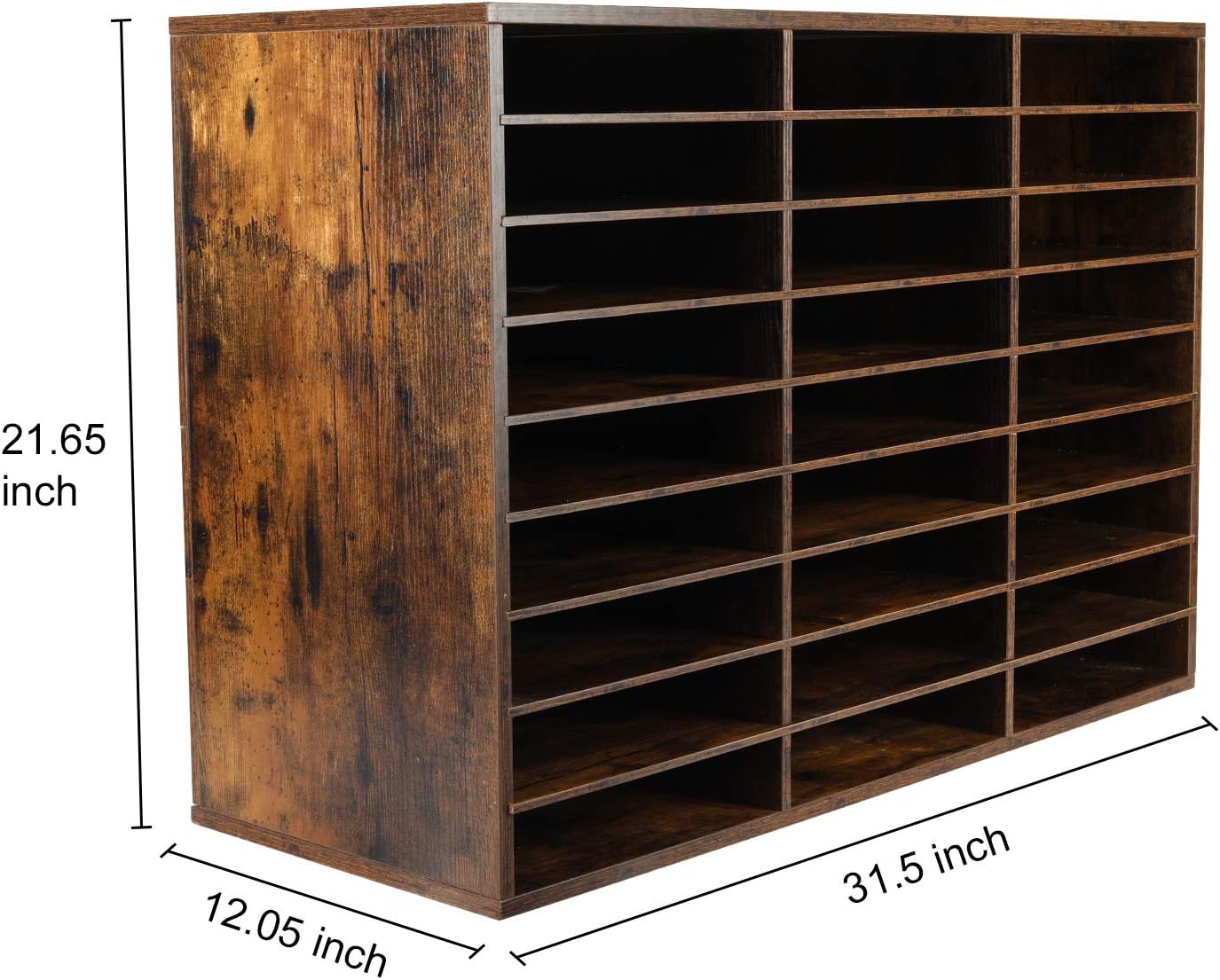 - 27-Compartment Mail Sorter Organizer: Hold 500+ A4 paper sheets in each compartment in this mail organizer. With 27 compartments (12 x 9 x 2.1 inch eash slots), store comics, magazines, and travel brochures effortlessly. EPA-certified particleboard ensures long-term durability for office/classroom use.