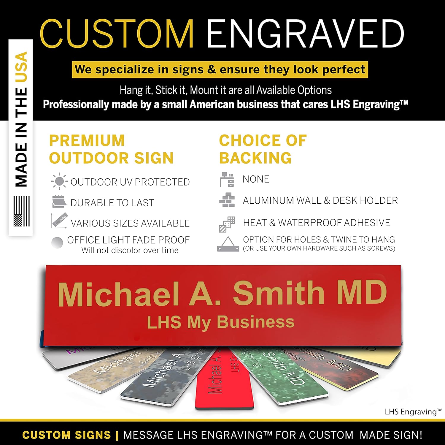 Engraved Name Plates for Door Sign Personalized Red Plastic Plaque with Gold Letters - Made in USA 2x12 B17