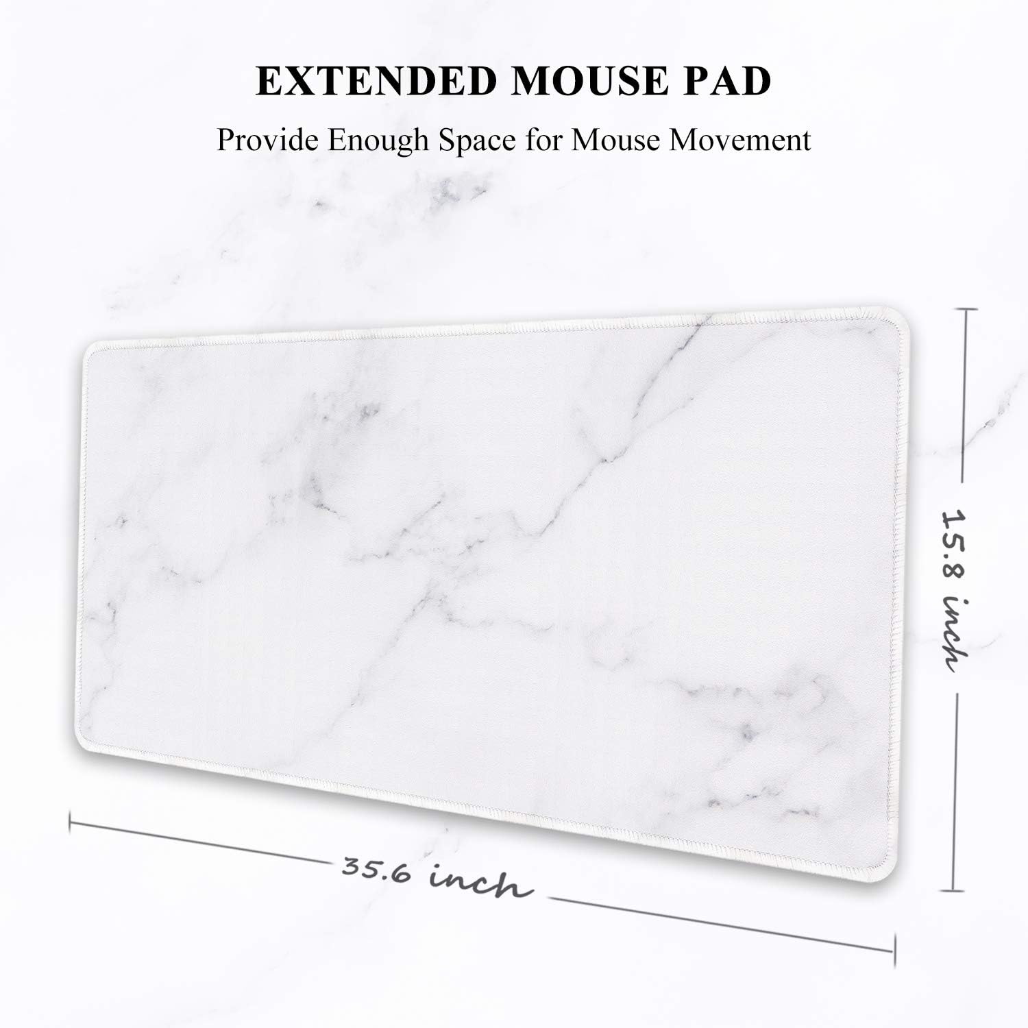 Auhoahsil Large Gaming Mouse Pad, Marble Theme XXL 35.4 x 15.7 in Desk Pad Stitched Non-Slip Rubber Long Computer Mousepad Thin Extended Full Size Desk Mat for Desktop, Laptop, Wireless Mice, White
