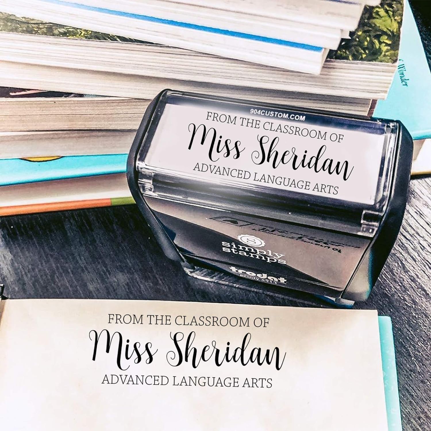 - SELF-INKING SIMPLICITY: Our custom teacher stamp operates with pre-installed self-inking technology for effortless, clean use. With a clear, crisp print and immediate readiness upon delivery, it offers convenience. Choose from seven pad colors β black, red, blue, green, pink, purple, and orange β easily interchangeable for your preference!