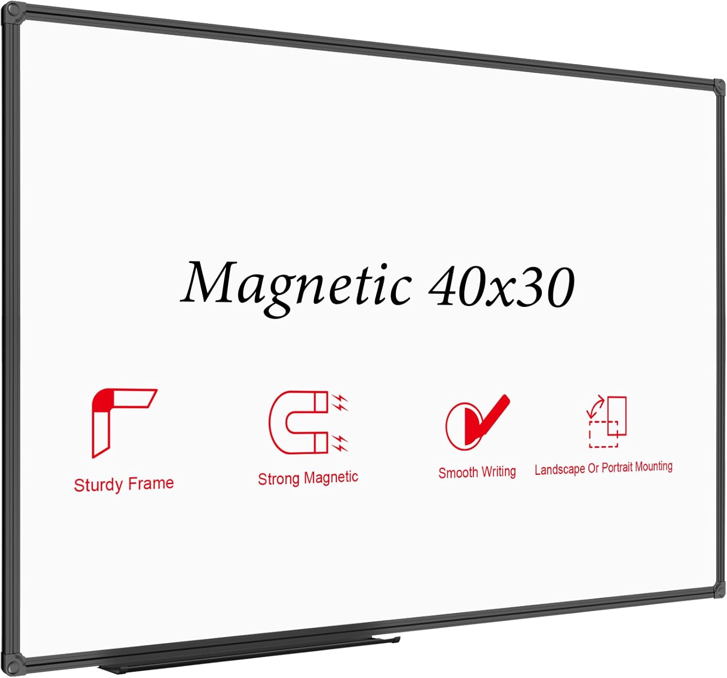 - ELEGANT BLACK ALUMINUM FRAME: Anti-Scratch satin black aluminum frame & detachable marker tray, Round nylon corners, Sturdy whiteboard structure perfect organizer for school home and office.
