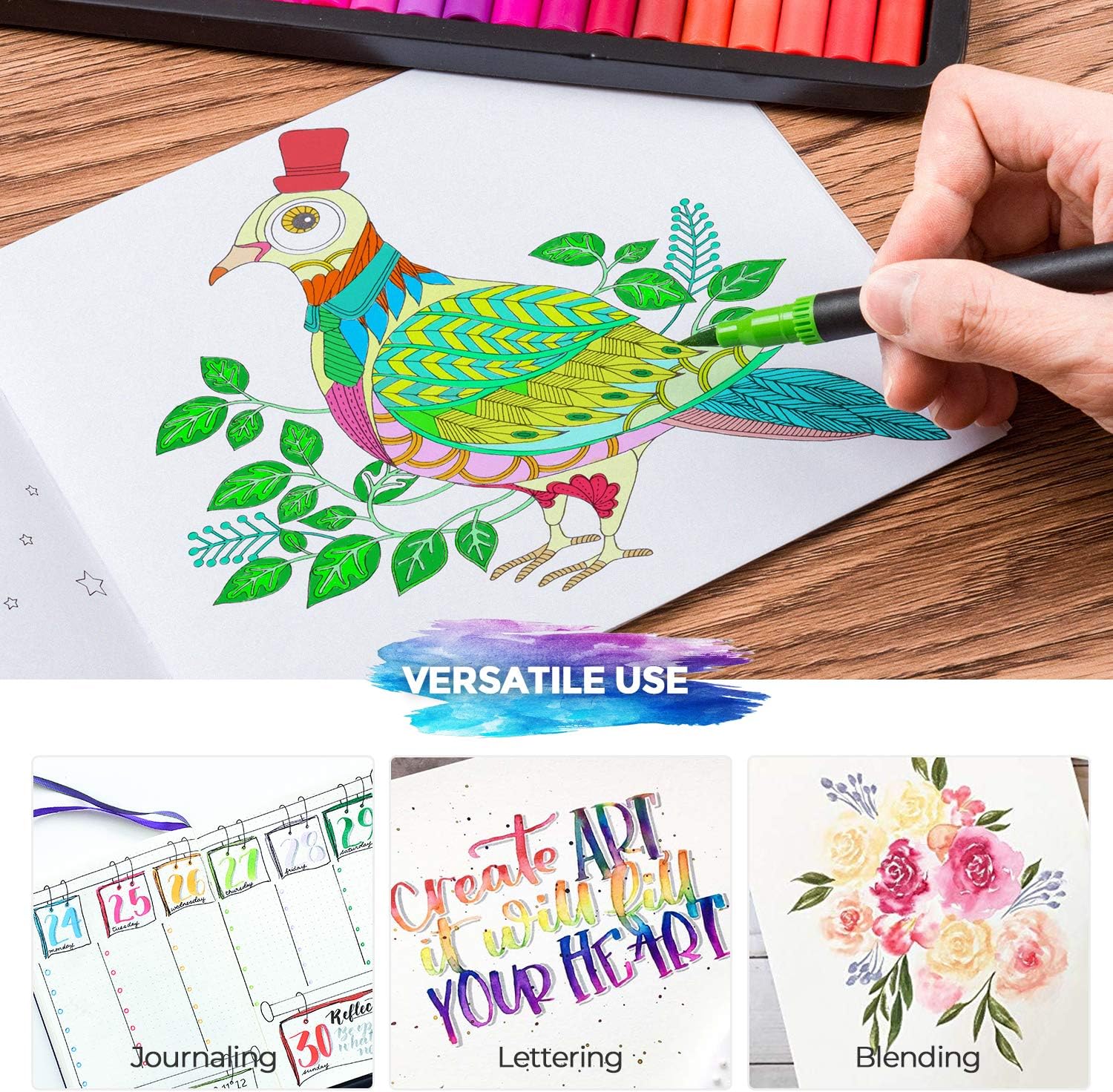 - Elevate your art with our dual tip markers featuring both brush tip and fine tip for versatile creativity; Great for sketching, drawing, and coloring