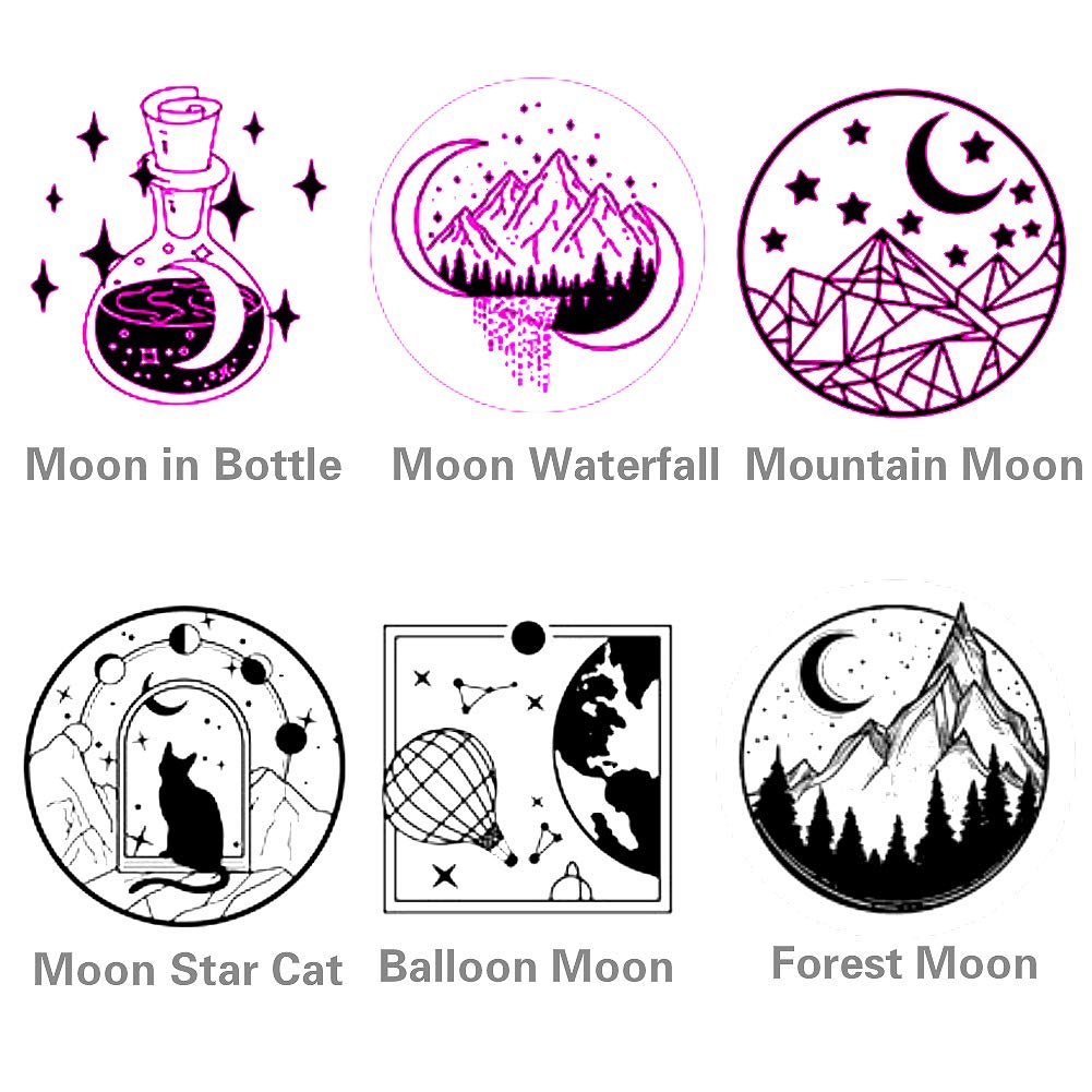 - Package Includes: 1 * Wooden hilt, 1 * Moon Star Cat wax seal stamp, 1 * Mountain Moon wax seal stamp, 1 * Moon in the Bottle wax seal stamp, 1 * Balloon Moon wax seal stamp, 1 * Moon Waterfall wax seal stamp, 1 * Moon Forest wax seal stamp.