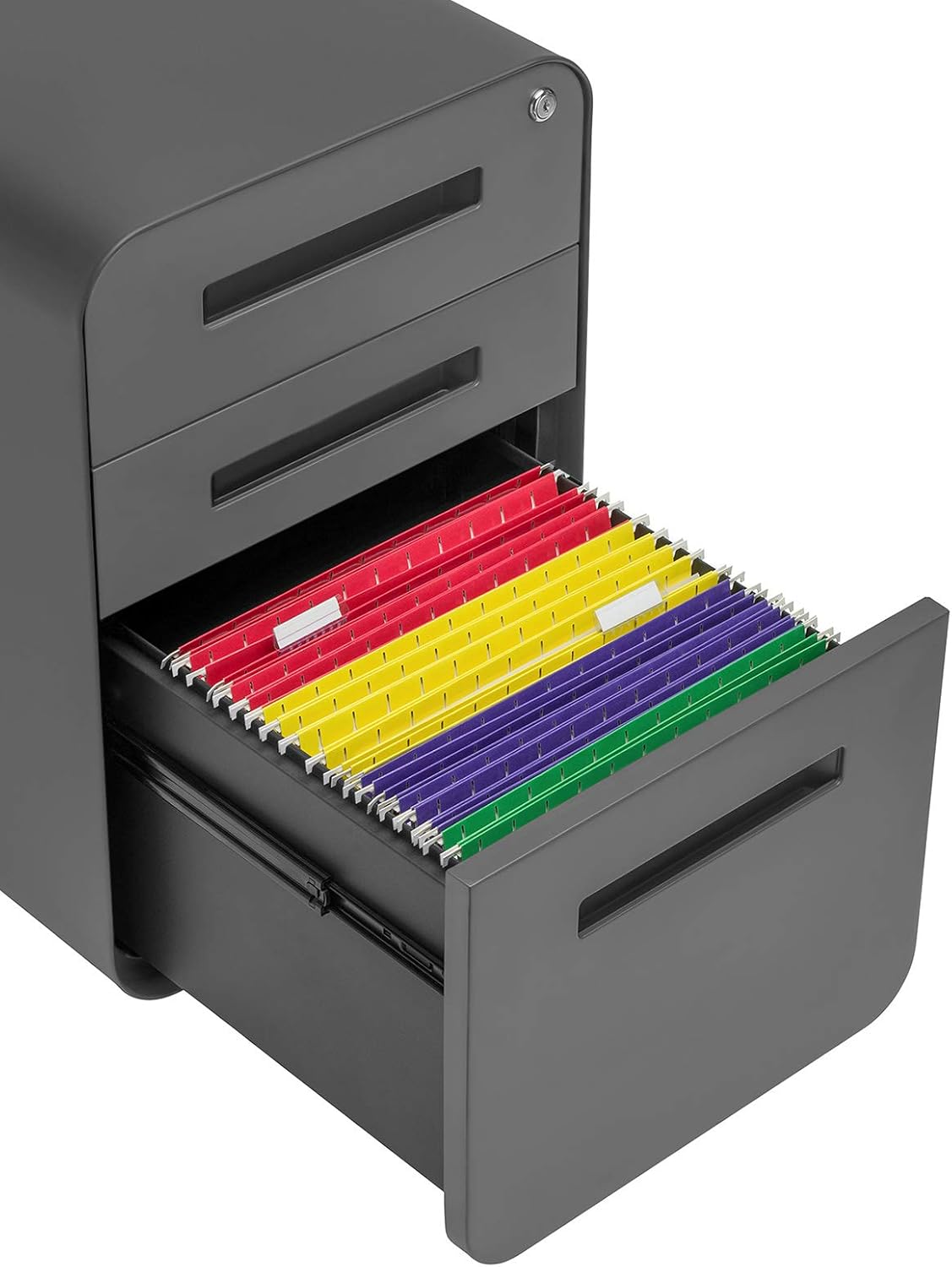 Laura Davidson Furniture Stockpile 3 Drawer File Cabinet with Lock - Under Office Desk Metal Filing Cabinet, Legal/Letter File Folders, Wheels and Stationary Feet, Pre-Assembled, Dark Grey