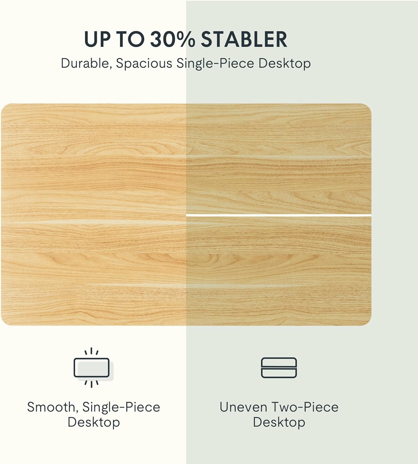 - 1" THICK ONE-PIECE DESKTOP:Experience the elegance of a completely smooth, seamless desktop surface. This design not only enhances the aesthetic but also ensures a sturdier and more stable structure compared to spliced tabletops.