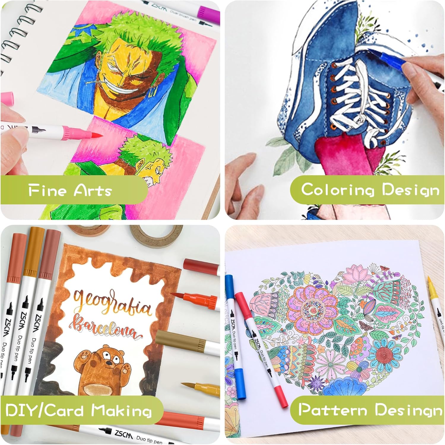 ZSCM 72 Colors Markers for Adult Coloring Books No Bleeding - Dual-Tip Art Markers, Fine & Brush Tip Coloring Pen for Adult Calligraphy, Drawing, Sketch Art & Creative Journaling