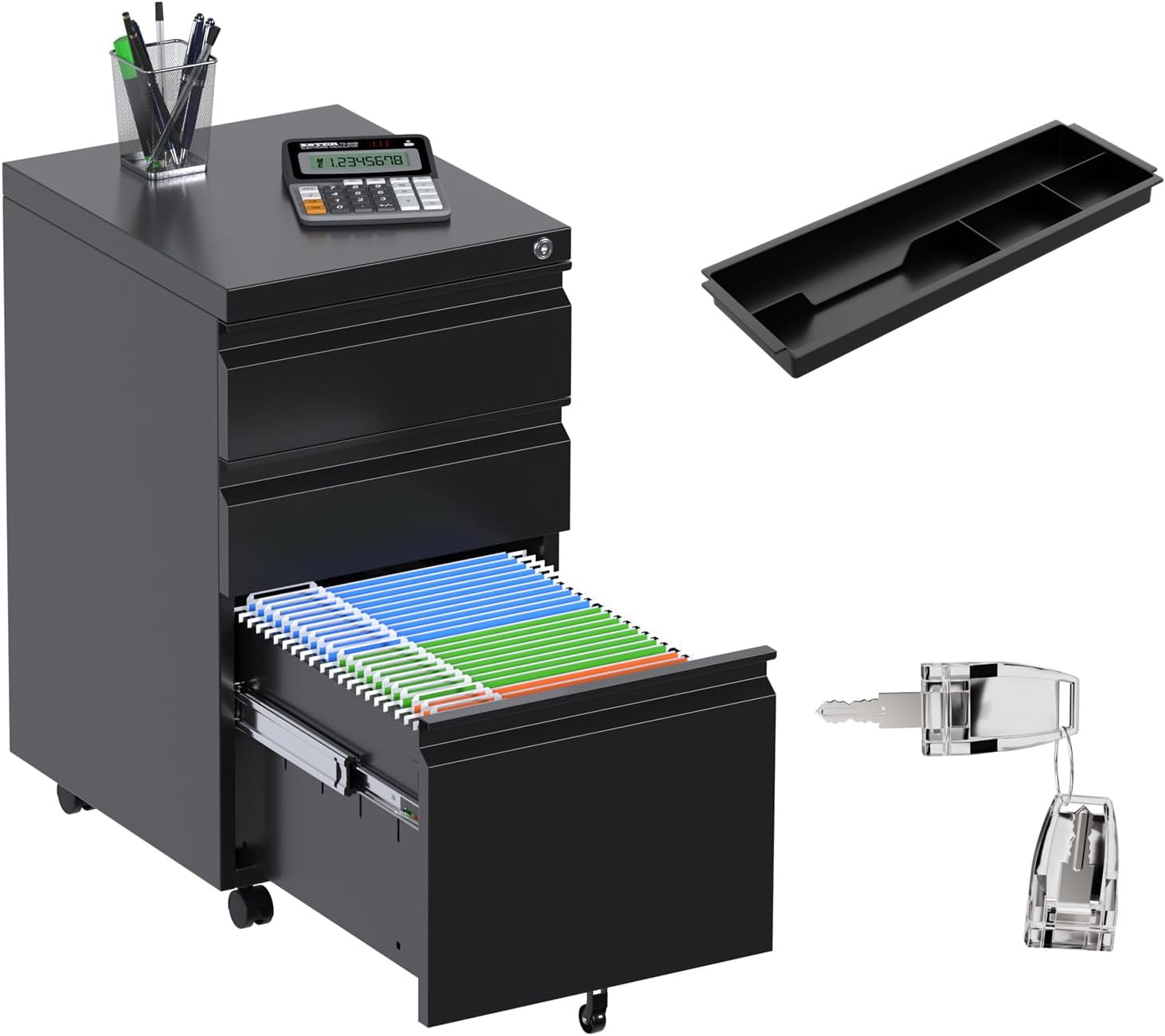 - ăORGANIZE YOUR WORKSPACEă Organize and Store Your Files, Office Supplies, and Electronics in One-Stop: Setup your office and workstation with the mobile file cabinet has 3 drawers to store your folders, files, documents, notebooks, and other office supplies in one place with the mobile file cabinet with 3-drawer