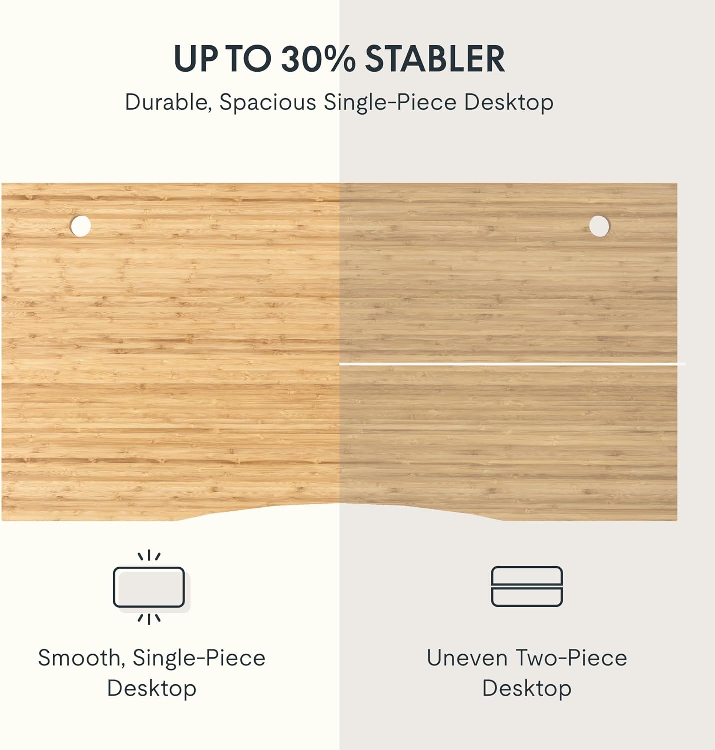 - AMPLE WHOLE-PIECE DESKTOP: With its whole-piece 1β eco-friendly desktop, this standing desk provides plenty of room for your computer setup, documents, and accessories, creating a well-organized and productive work environment. Due to hand measurements, desktop dimensions may vary slightly by 0 to 1β.