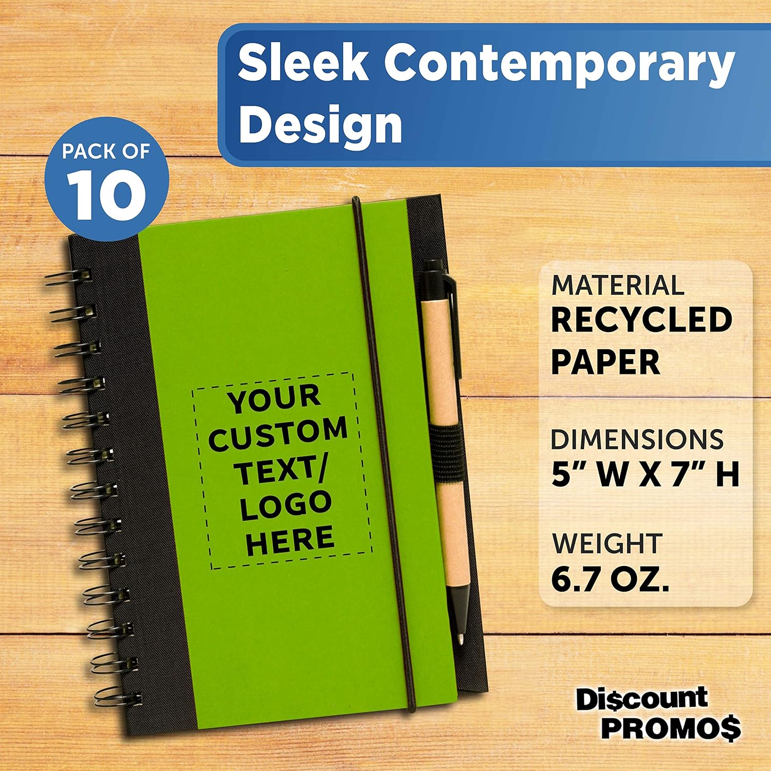 DISCOUNT PROMOS Custom Eco Block Notebooks with Pens Set of 10, Personalized Bulk Pack - Perfect for School, Office, Business, Home - Lime Green