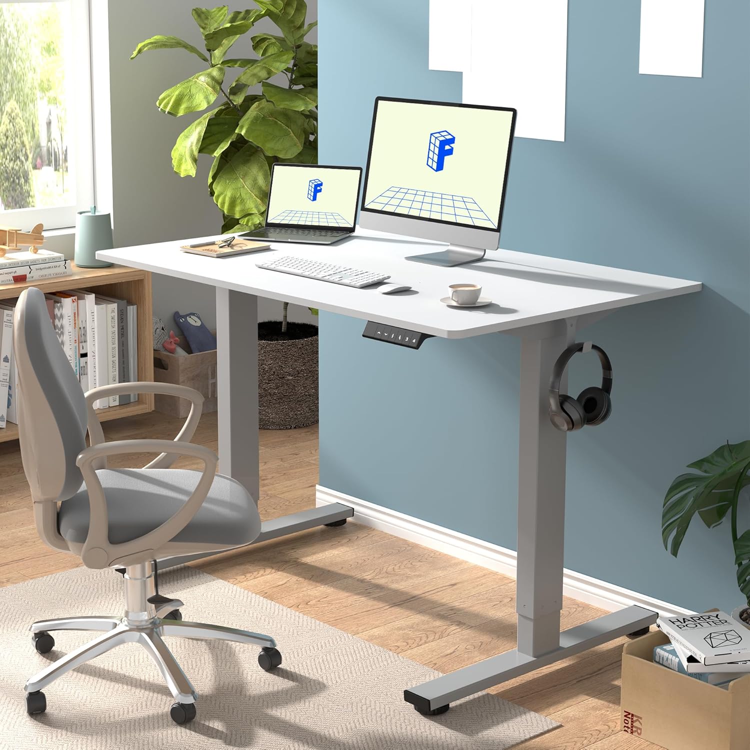 FLEXISPOT EN1 Whole-Piece Standing Desk 48 x 30 Inches Electric Height Adjustable Desks for Home Office Stand Up Desk (Silver Frame + 48 in White Top, 2 Packages)