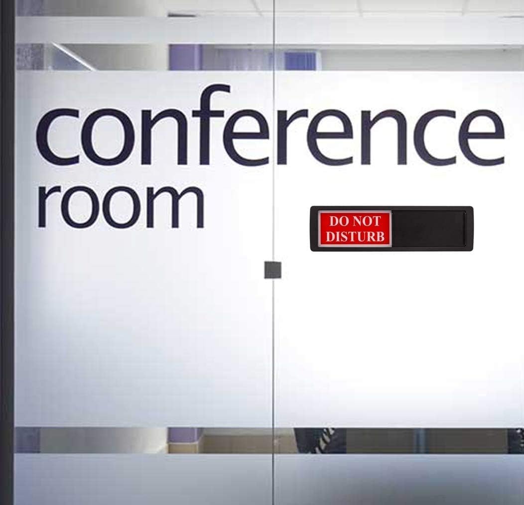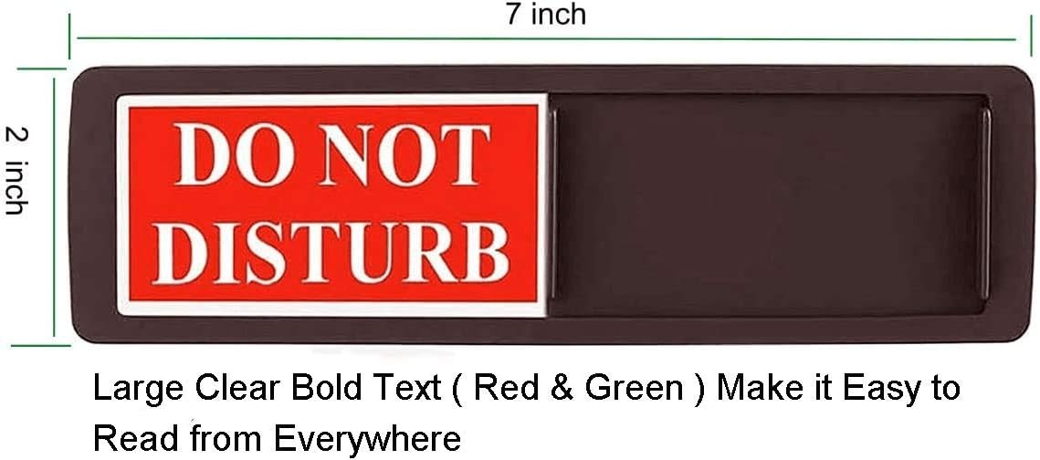 - RESPECT YOUR TIME AND SPACE: Green side is WELCOME PLEASE KNOCK, red side is DO NOT DISTURB. This privacy sign can display the availability of any office, conference room or employee with our (7" length) slider sign (2" high) with a top sliding plate to reveal one message at a time to inform your office or home whether rooms are vacant or occupied.