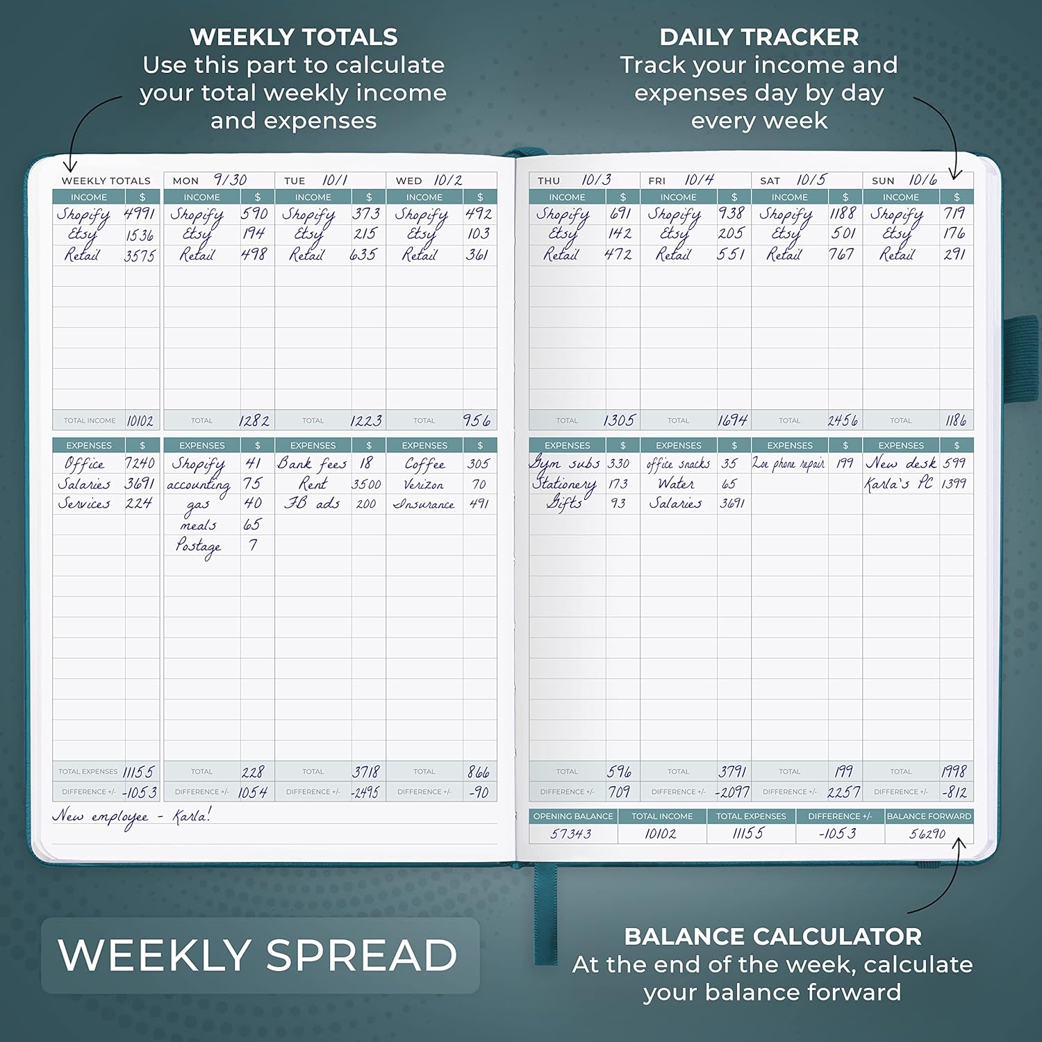 - SWITCH TO EFFICIENT & STRESS-FREE ACCOUNTING: This accounting book is undated and lasts a whole year and has 113 pages, including 53 weekly views, an annual summary, empty note pages, and, at the back, a spacious pocket for receipts.