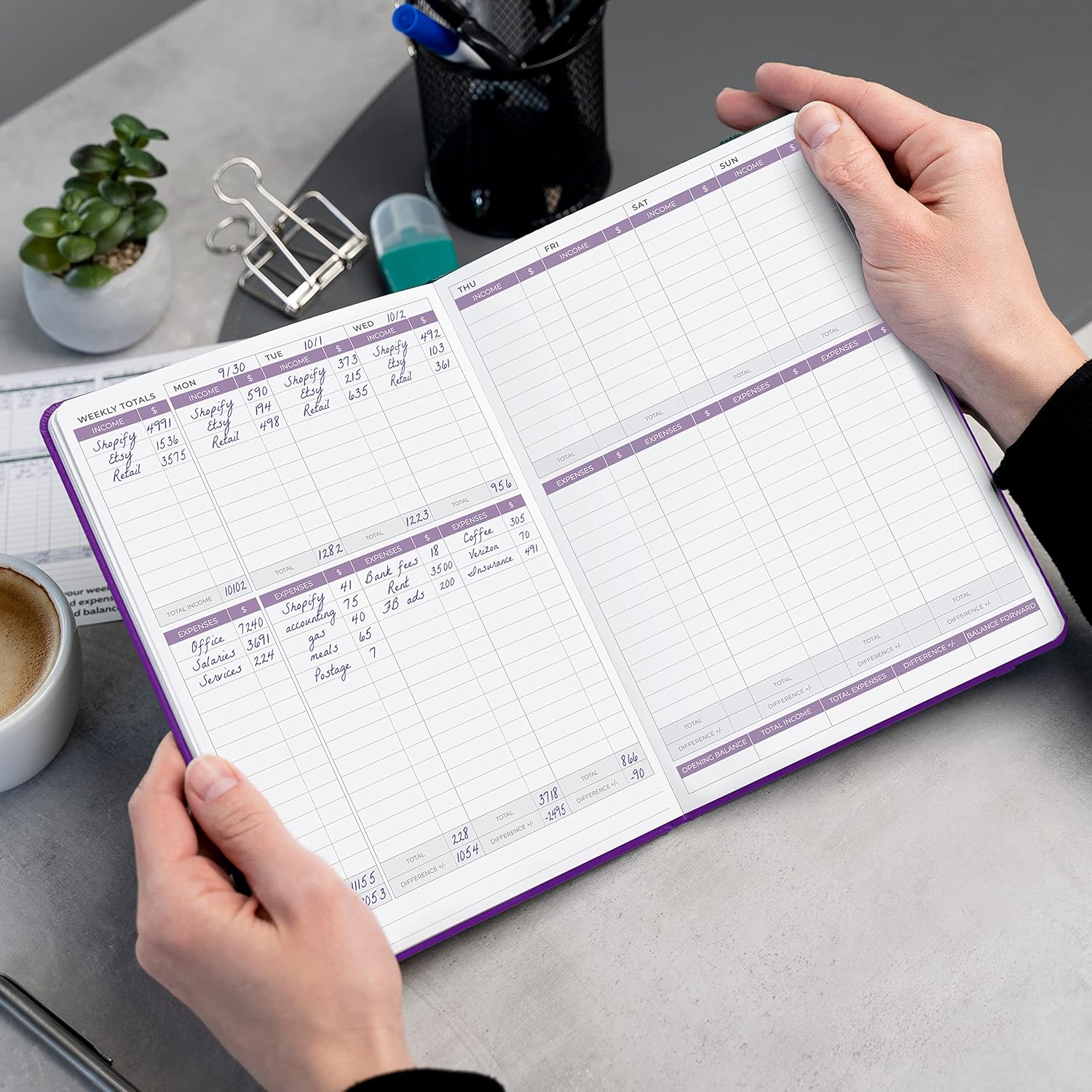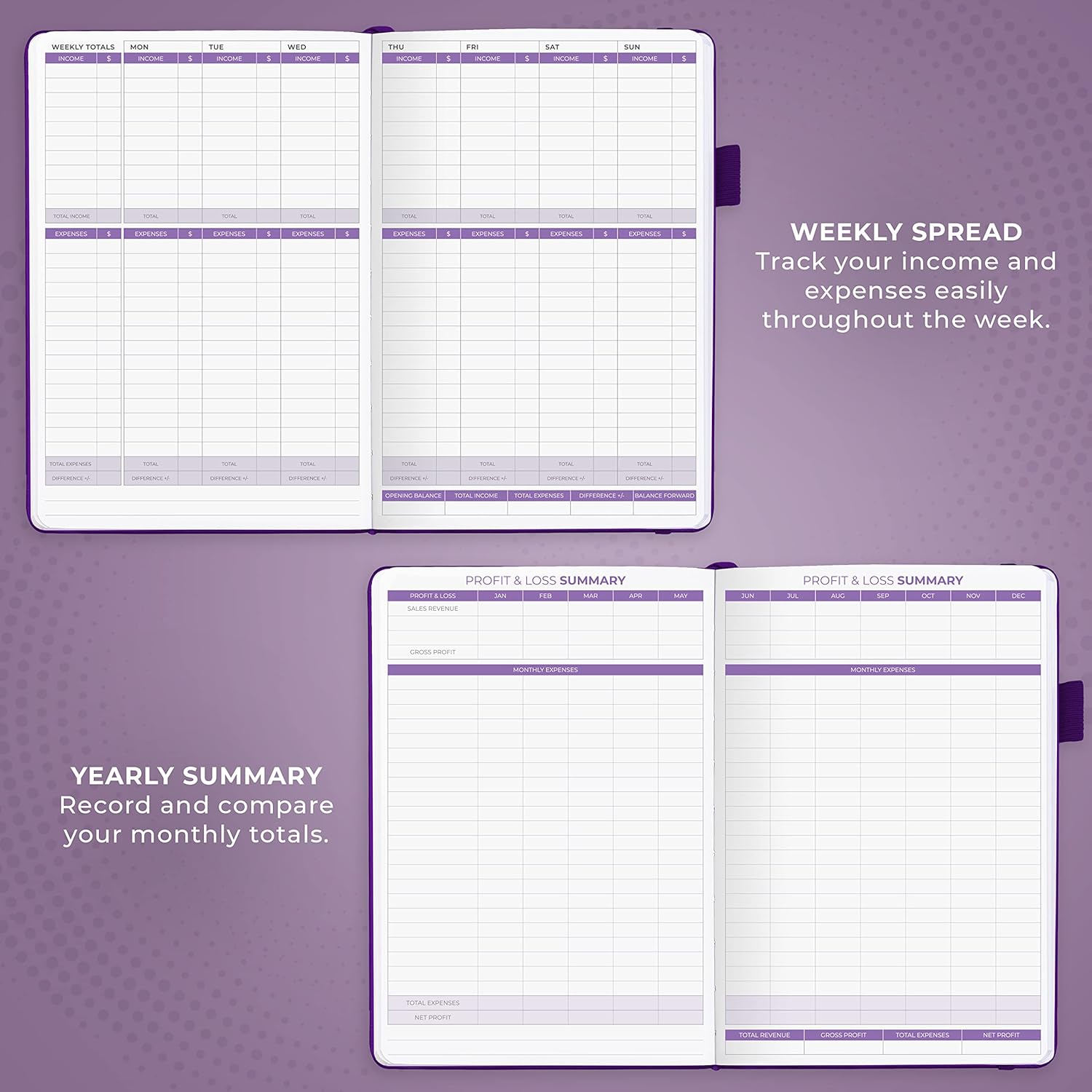 - SWITCH TO EFFICIENT & STRESS-FREE ACCOUNTING: This accounting book is undated and lasts a whole year and has 113 pages, including 53 weekly views, an annual summary, empty note pages, and, at the back, a spacious pocket for receipts.