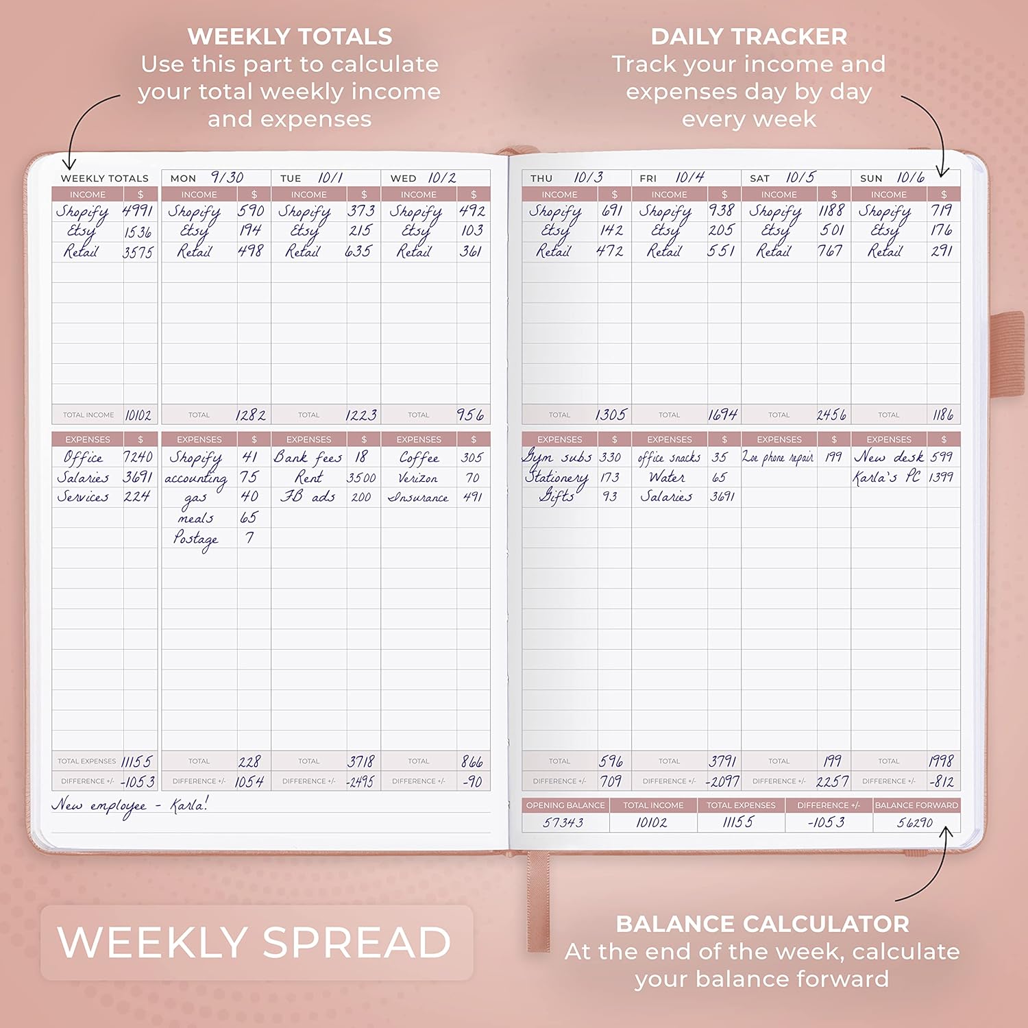 - SWITCH TO EFFICIENT & STRESS-FREE ACCOUNTING: This accounting book is undated and lasts a whole year and has 113 pages, including 53 weekly views, an annual summary, empty note pages, and, at the back, a spacious pocket for receipts.