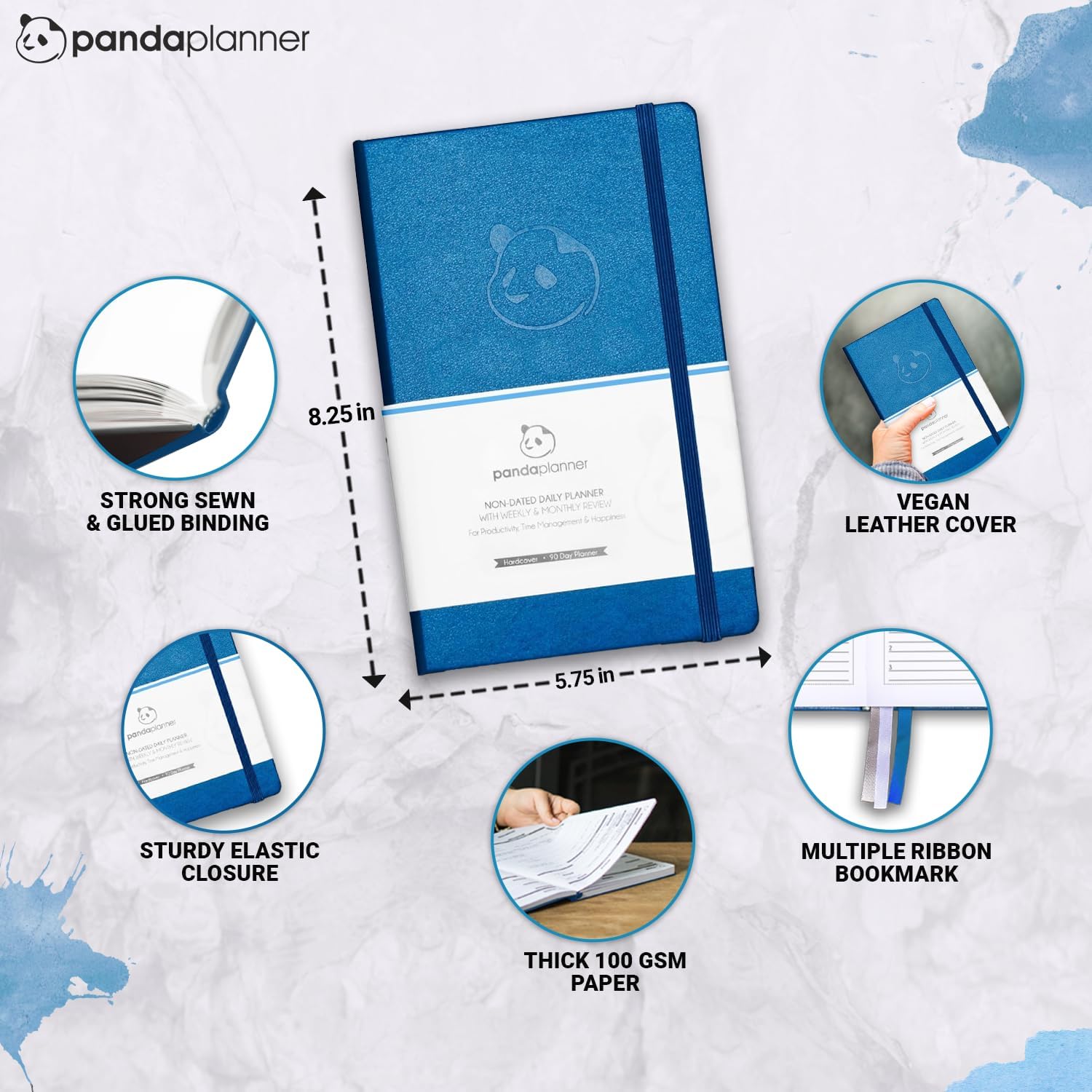Panda Planner 2025-2026 – Undated Classic Daily Planner & Hourly Schedule Planner Notebook – Productivity Planner for Focus & Goals – Blue