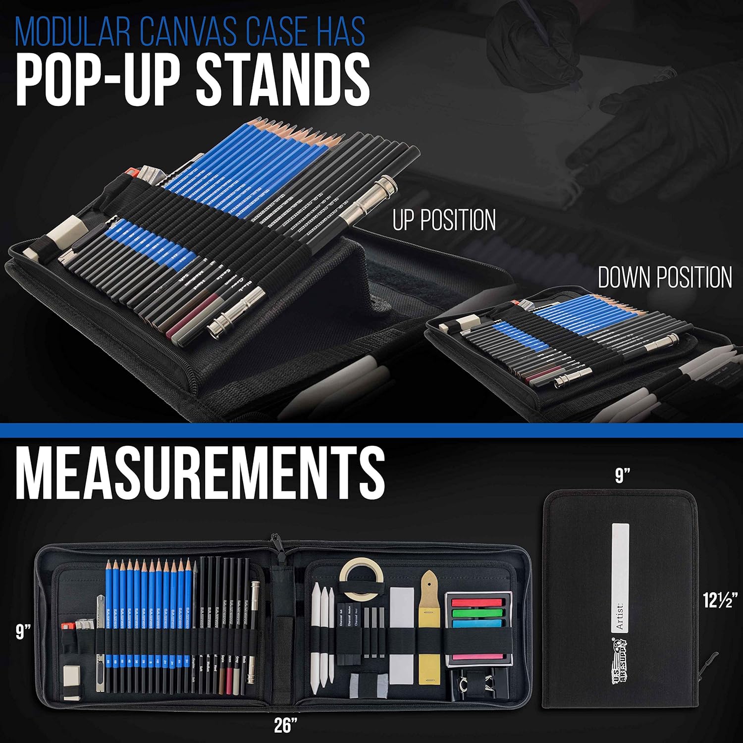 - Complete 54-piece ultimate professional drawing and sketching art set that includes every tool and sketch pad you need to create amazing sketches! The zippered carrying case has all the tools conveniently stored in an elevated pop-up organizer providing easy access to them!