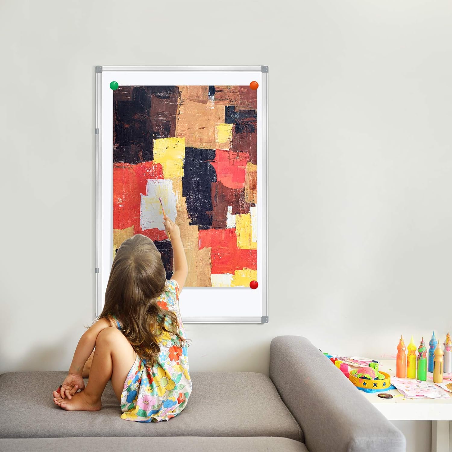 - Protective, anti-scratch magnetic dry erase surface also dual as a bulletin board by using magnets to pin notes, messages, pictures, memos, calendars and more.