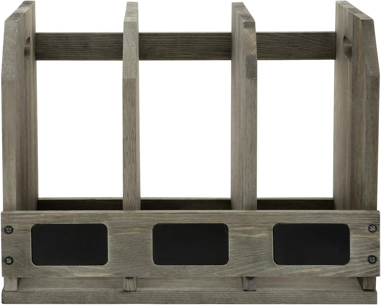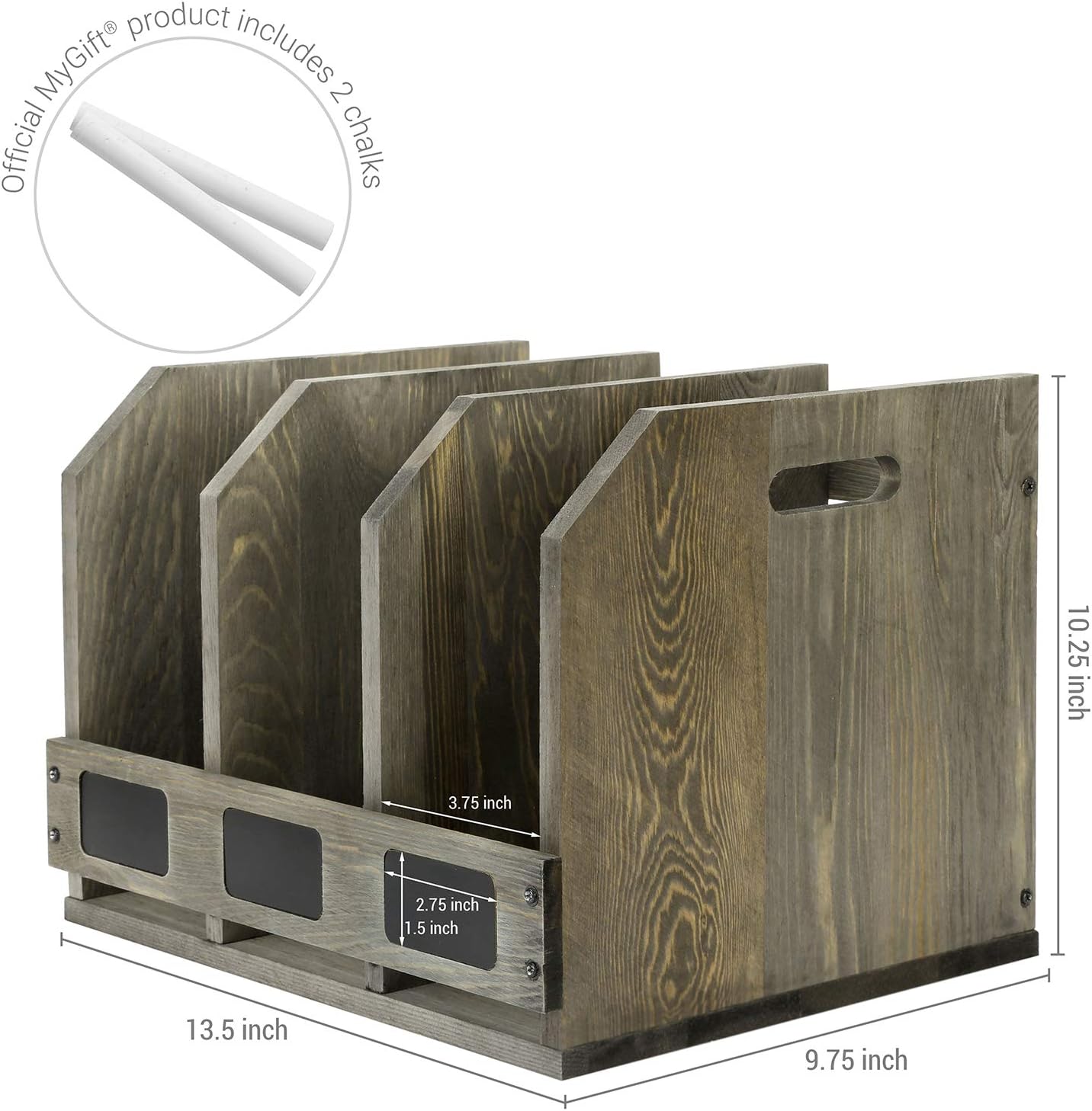 MyGift Vintage Gray Solid Wood Magazine Holder with 3 Compartments and Chalkboard Label, Office Home Desktop Document Organizer, Desk File Folder and Binder Rack