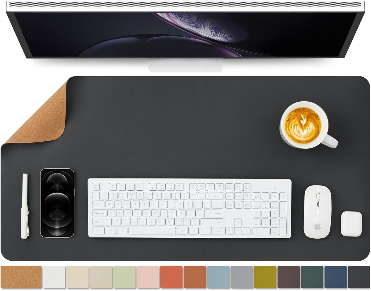 Cork Desk Mat - Dual-Sided Desk Pad for Office and Home - Desk Organization and Accessories - Ideal for Large Mouse Pad and Desk Mats on Top of Desks(Black,80cmx 40cm)