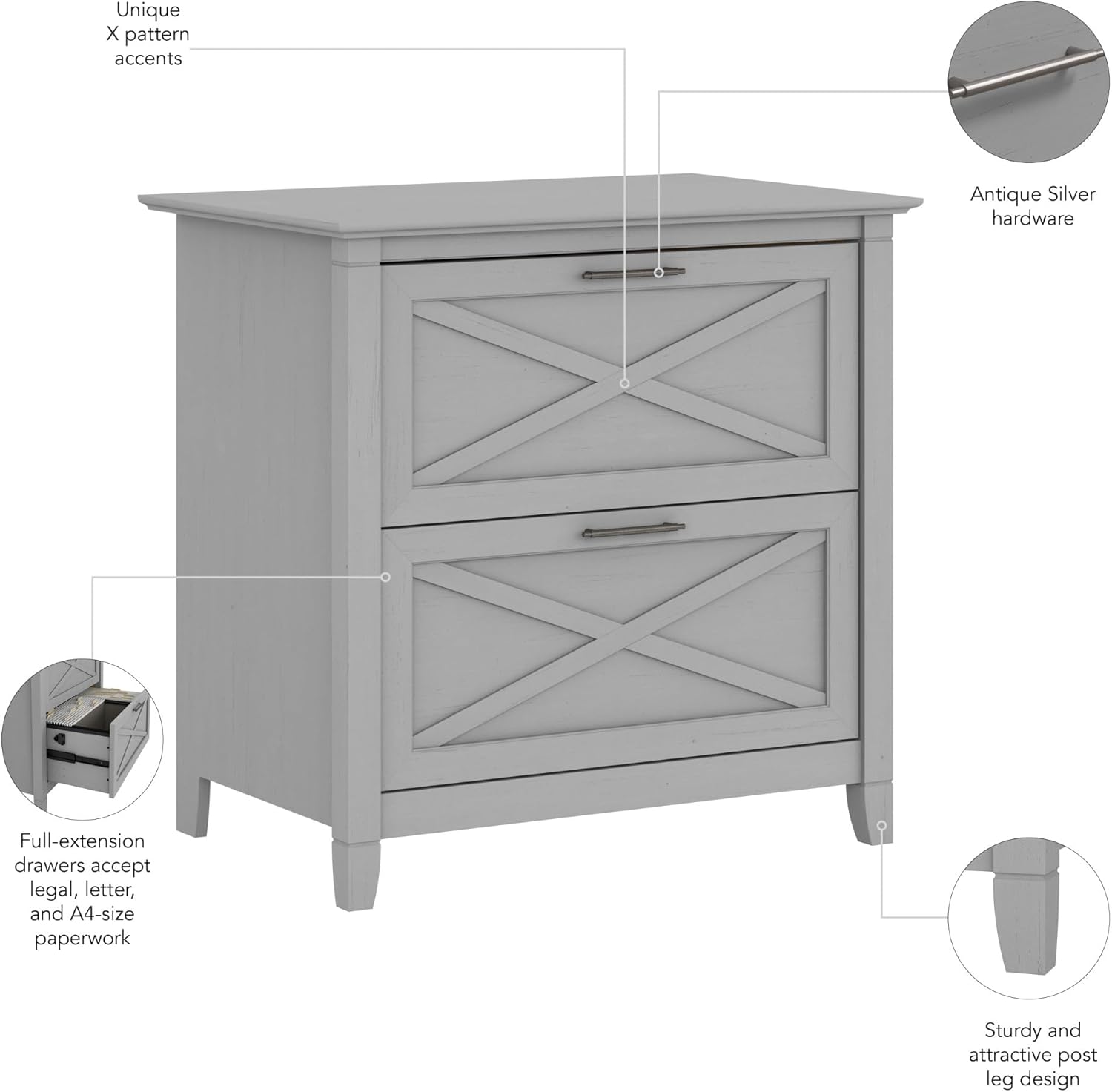 Bush Furniture Key West 2 Drawer Lateral File Cabinet in Cape Cod Gray | Document Storage for Home Office | Accent Chest with Drawers