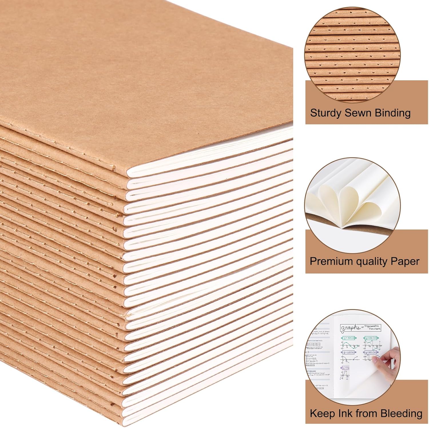 - Notebook set includes: 24 A5 kraft blank notebooks, each 30 sheets (60 pages) of high-quality writing paper. These notebooks are perfect for note-taking, sketchbook, and carrying along during travel.