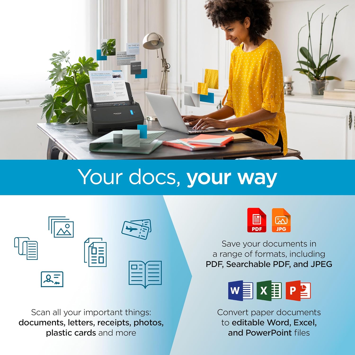 ScanSnap iX1400 High-Speed Simple One-Touch Button Color Document, Photo & Receipt Scanner with Auto Document Feeder for Mac or PC, Black