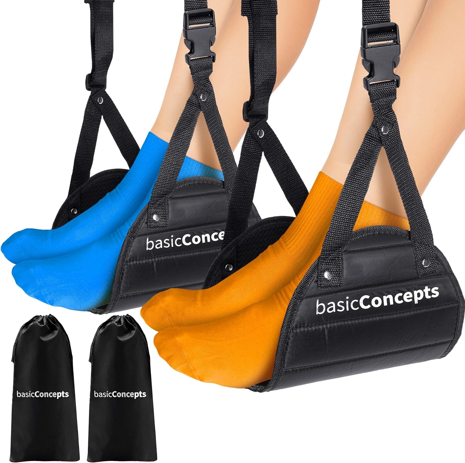 BASIC CONCEPTS Airplane Adjustable Foot Hammock (2 Pack), Perfect or Office Footrest to Relax Your Feet (Memory Foam) - for Travel Accessories, Desk Hammock, Comfy Hanger