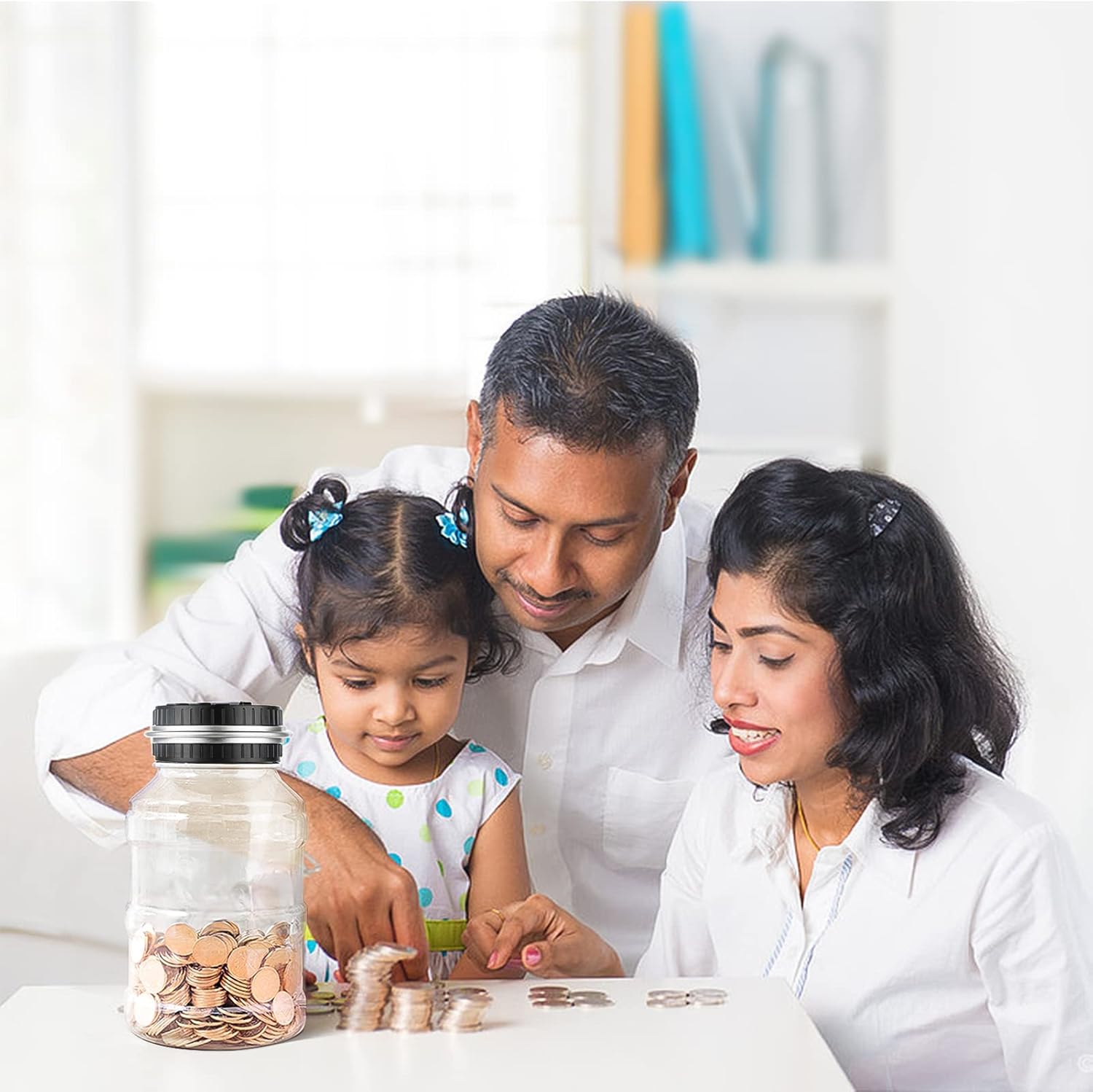 - FUN WAY TO SAVE CHANGE: Smart and active piggy bank. Come and get this value coin money bank which is an educational toy also. Get this saving jar, you can also get a small screwdriver which is needed.