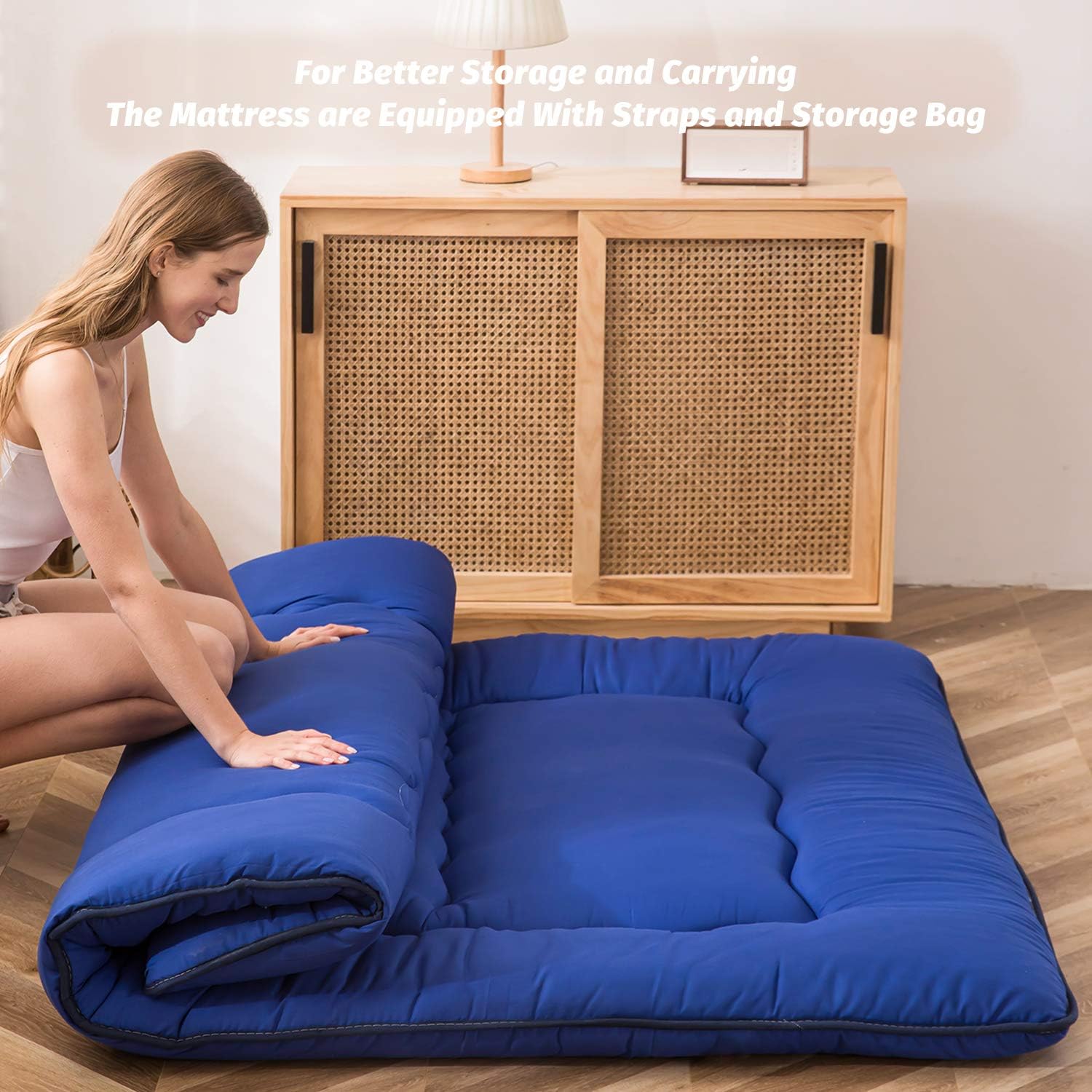 MAXYOYO Japanese Floor Mattress Futon Mattress, Thicken Sleeping Pad Foldable Roll Up Floor Futon for Adults Tatami Mat Dormitory Bed Lounger, Royal Blue, Full Size