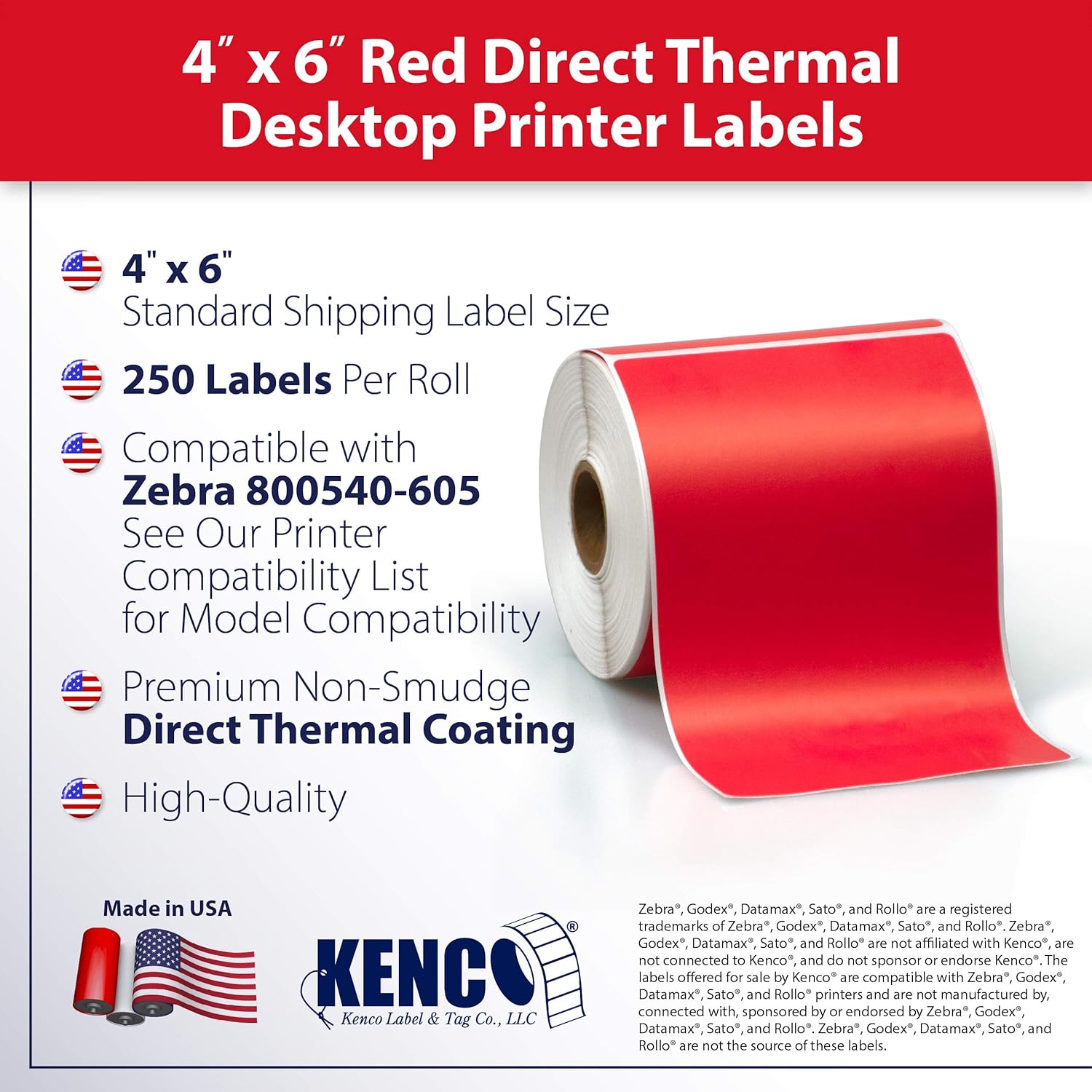 4" X 6" Direct Thermal Perforated Stickers Labels for Shipping Labels, Inventory, and Color Coding - Compatible with Zebra, Rollo, Godex and More (Red, 24 Rolls)