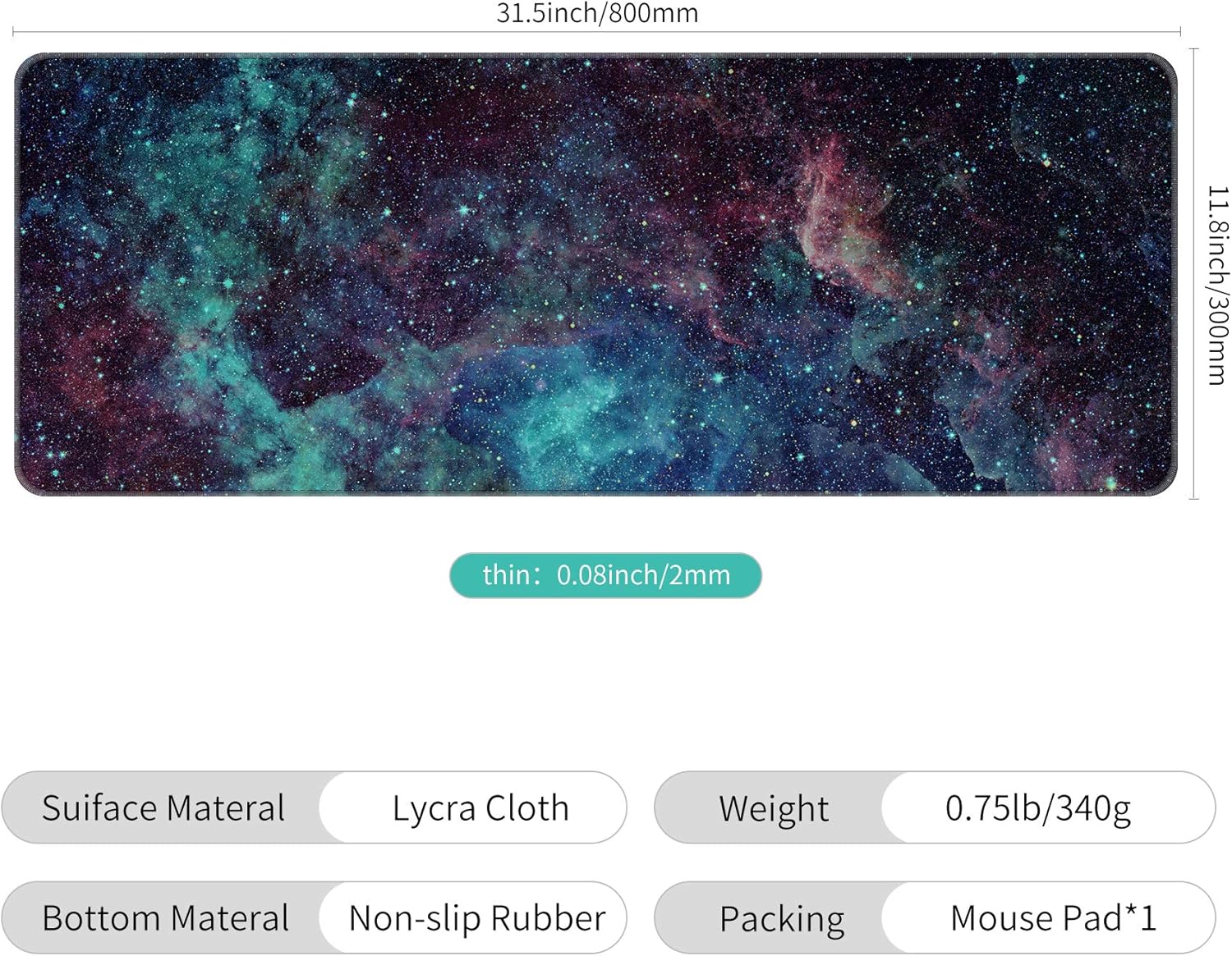 Dynippy Thin Extended Gaming Mouse Pad (31.5 * 11.8 * 0.08 inch) with Stitched Edges Large , Long XXL Keyboard and Mouse pad Desk Mat for Gaming Office & Home - Galaxy Space